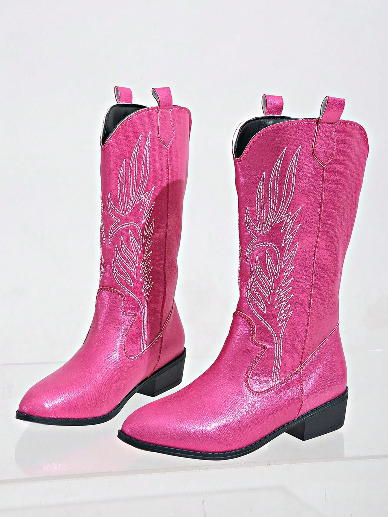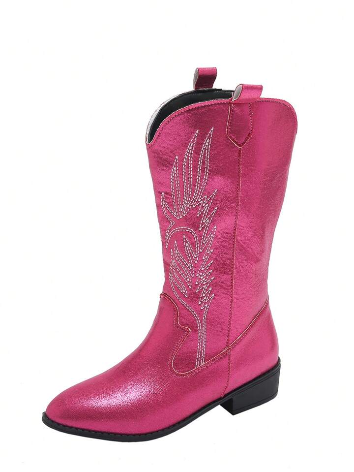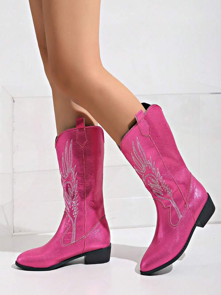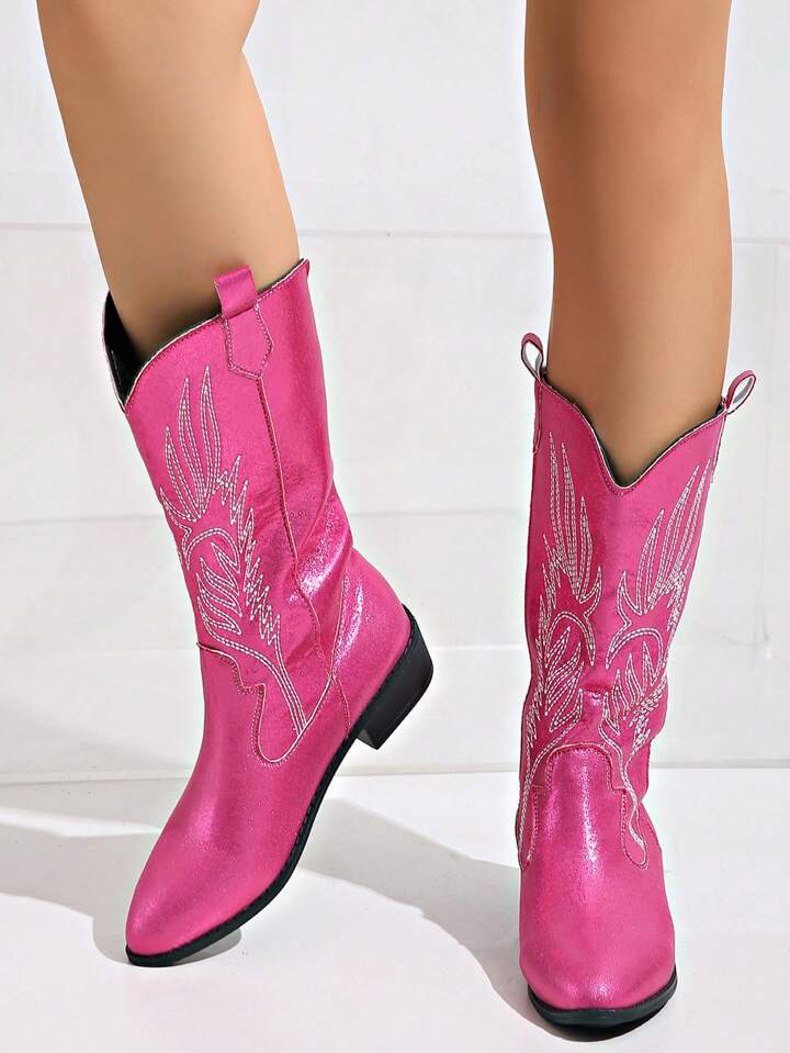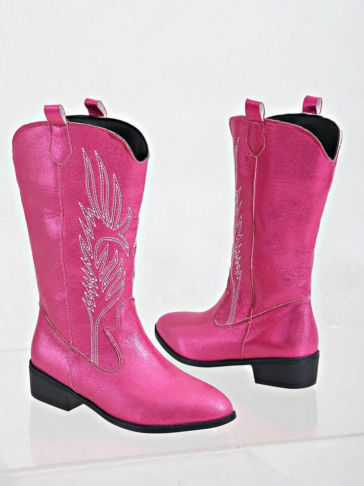 Goth Women Embroidery Detail Point Toe Western Boots, Funky Outdoor Fashion Boots, Cowboy Boots For Women