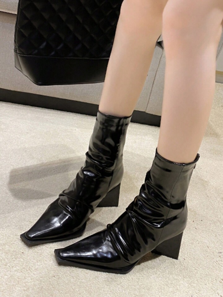 Goth Women's Chunky Heeled Zipper Slouchy Boots