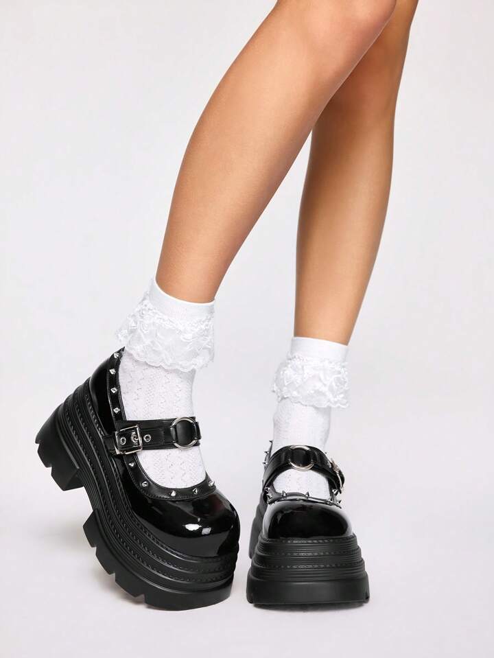 Goth Women's Cross Strap Buckle Punk Platform Thick Sole Loafers Flats