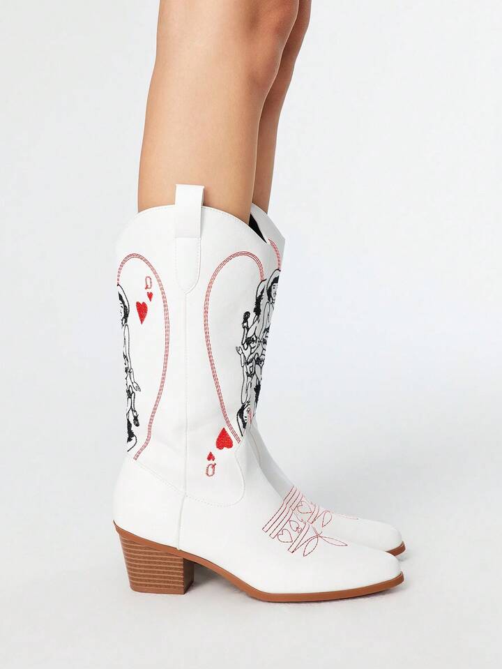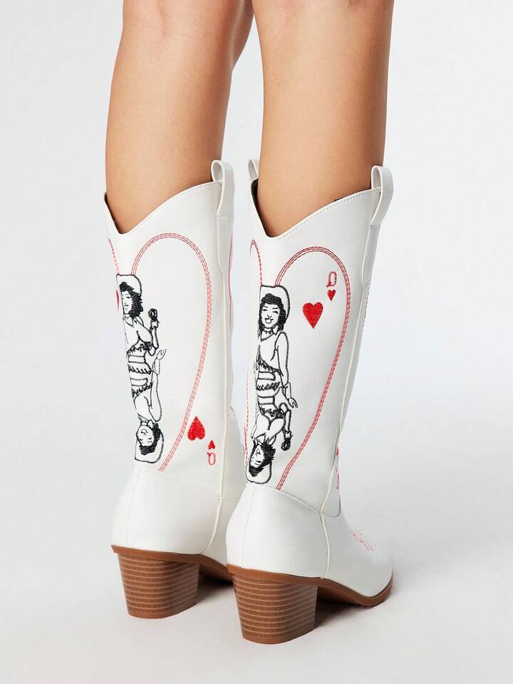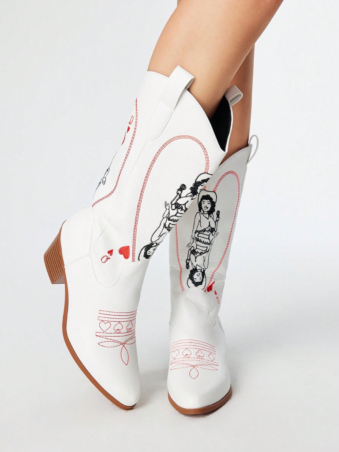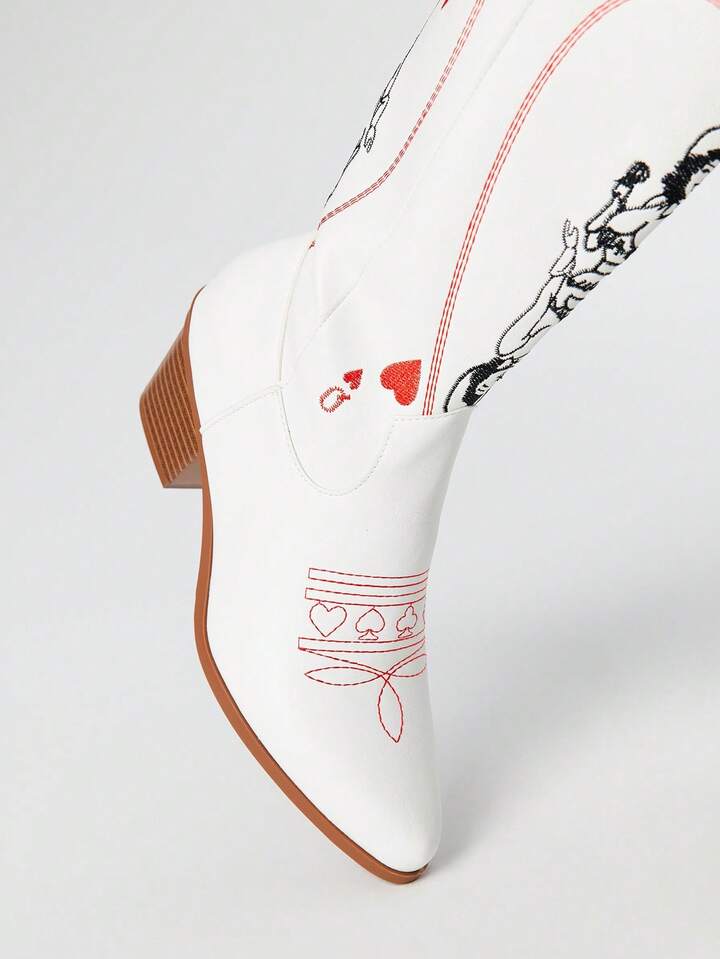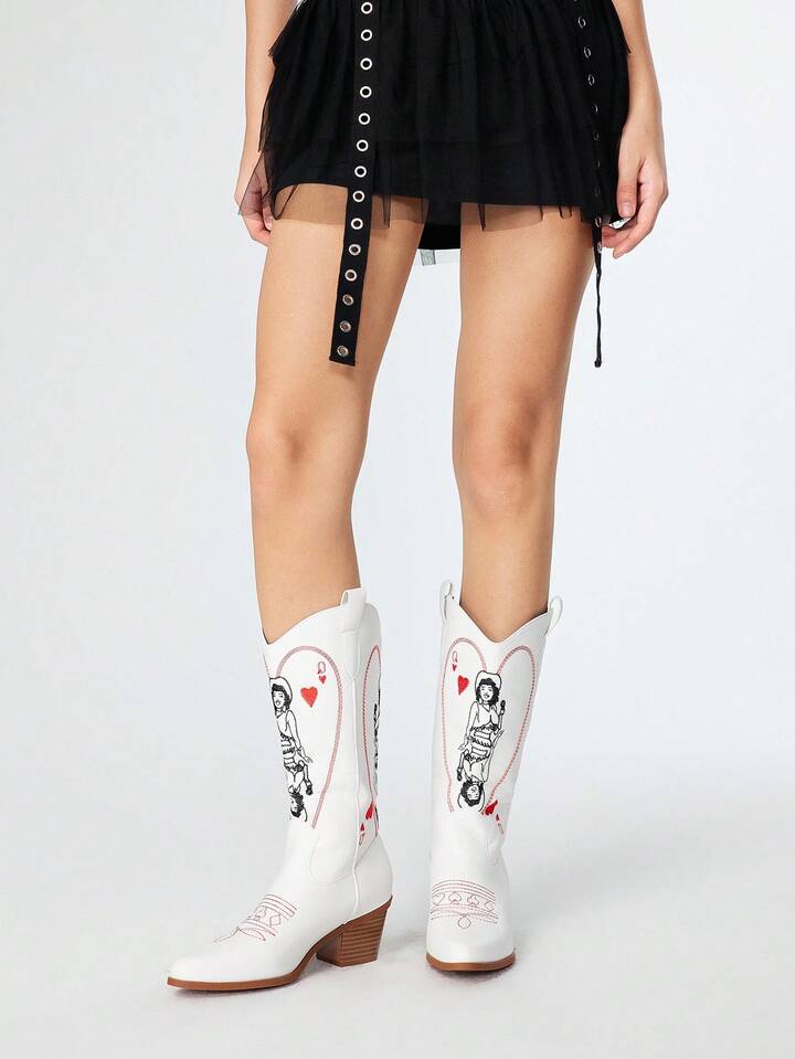 Goth Women's Hollow Design Embroidery White Western Boots Genuine Leather Over-The-Knee Boots, New Spring & Autumn Style