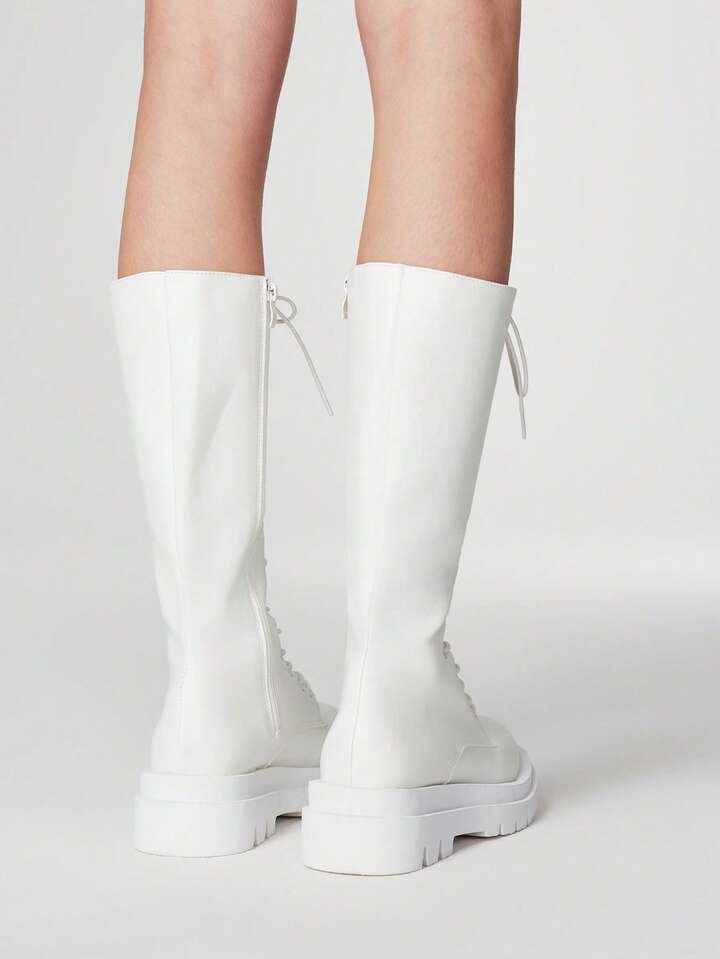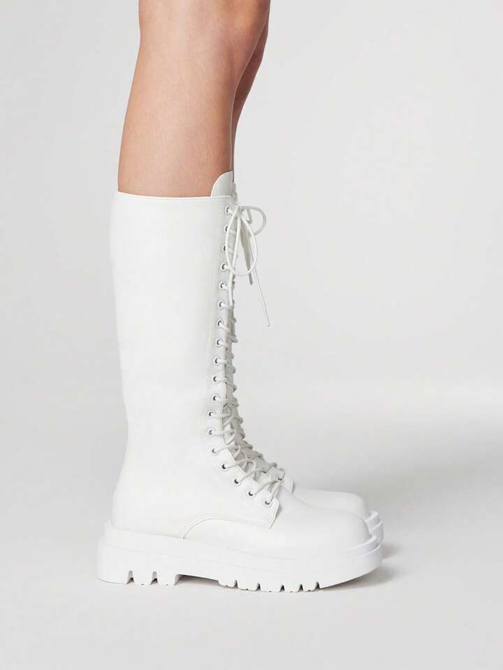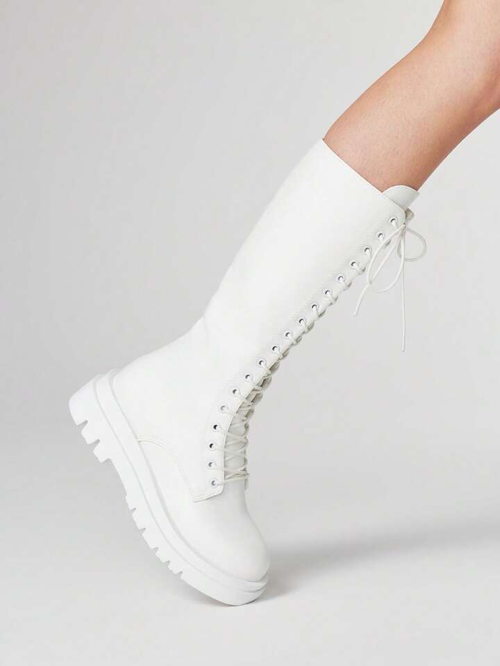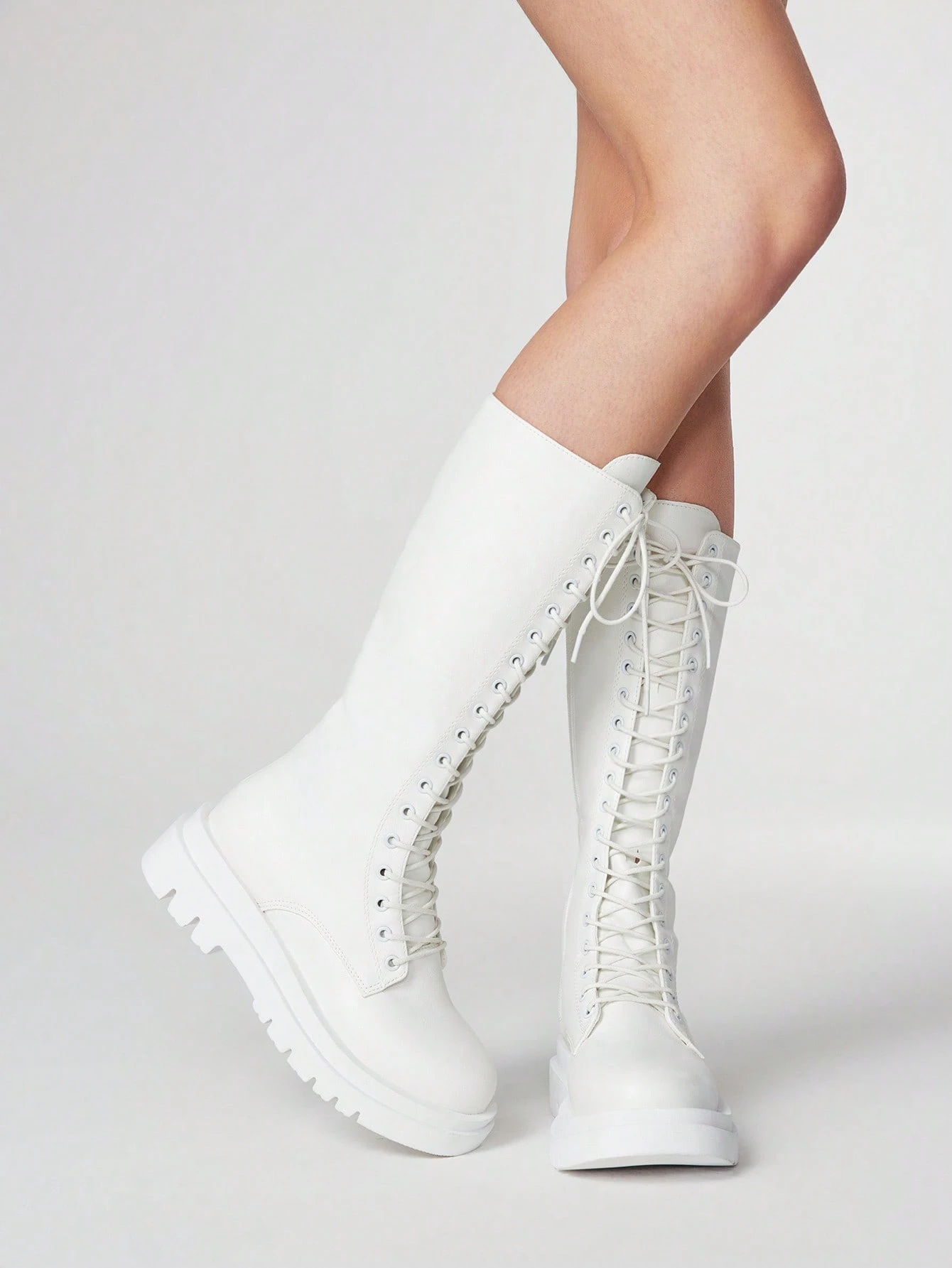 Goth Women's Knee-High Boots Fashionable Lace-Up Thick-Soled Chunky Heel Women's Boots