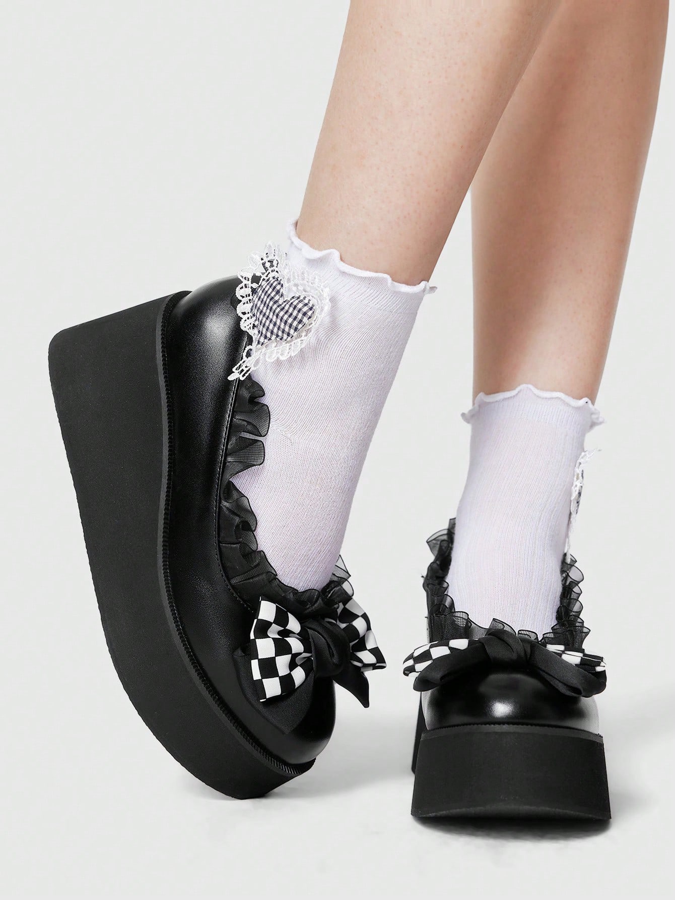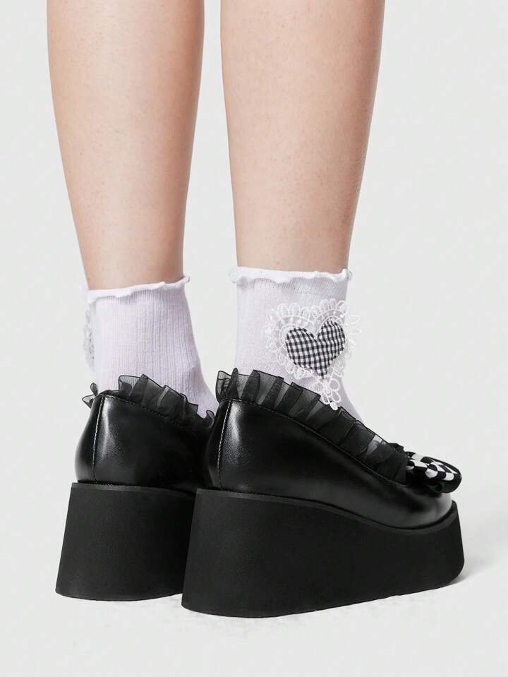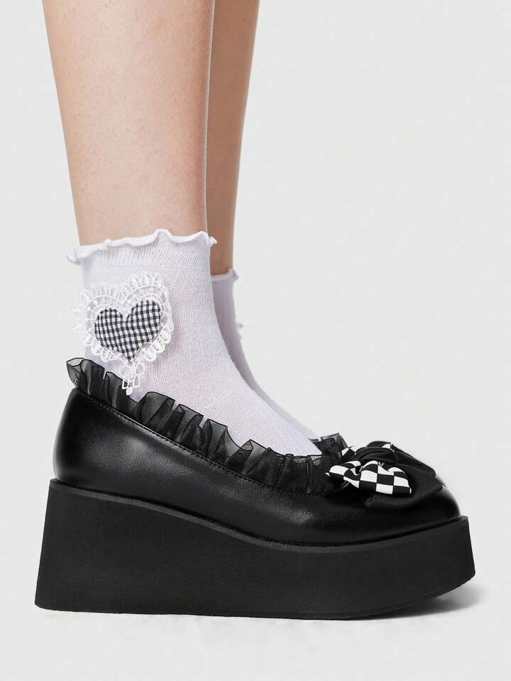 Goth Women's Punk Round Toe Platform Wedge Pumps, Thick Sole Black Buckle High Heels