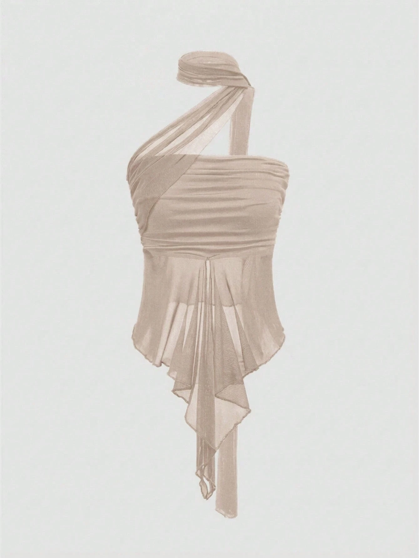 Goth Women's Sexy Side Ruched Detachable Mesh Scarf Bandeau Top
