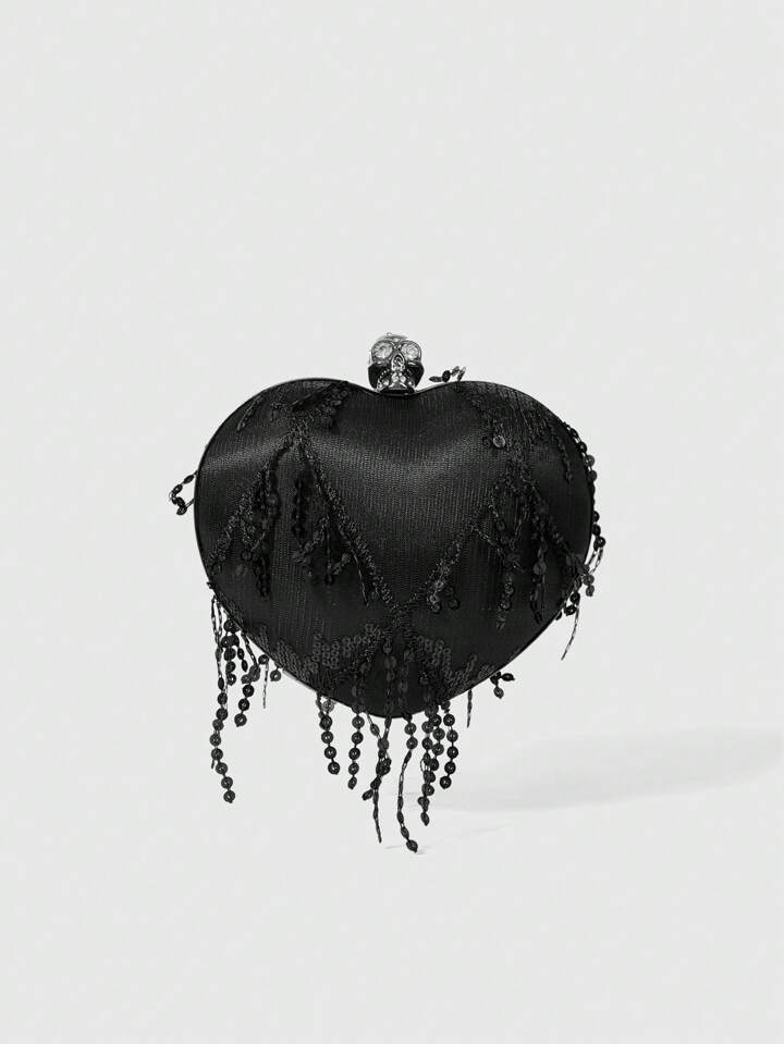 Goth Women's Solid Color Sequin Decor Metal Chain Party Clutch Bag