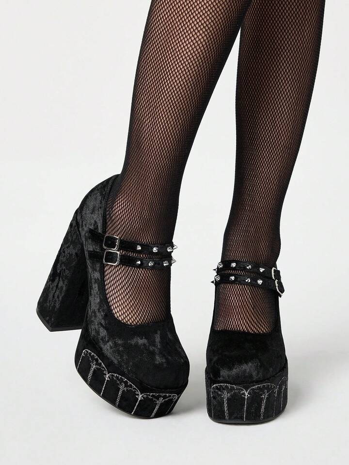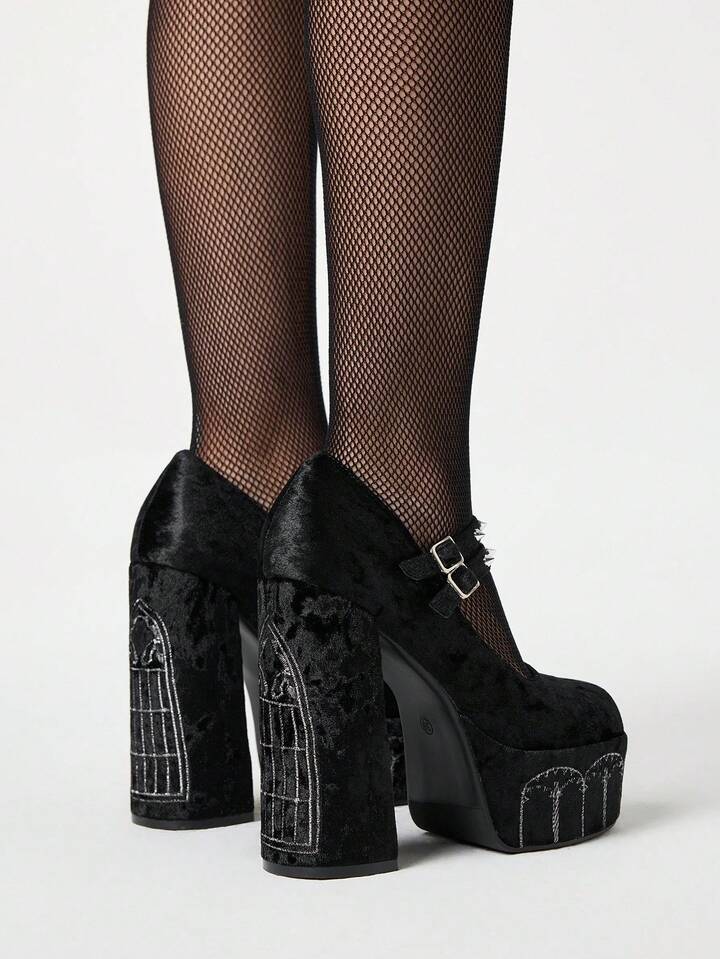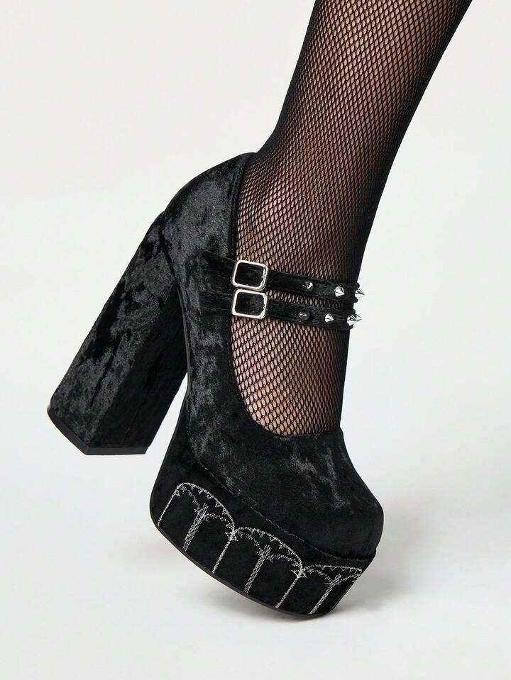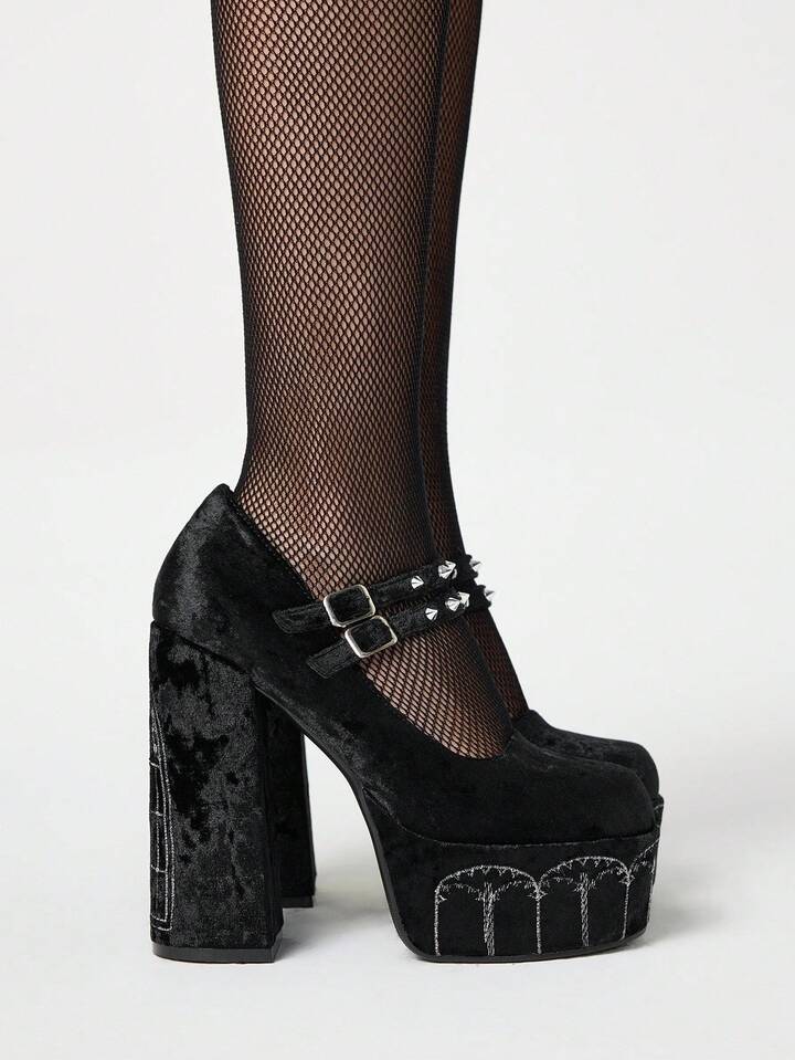 Goth Women's Spring/Autumn New Studded Embroidery Pattern High Heel Platform Pumps