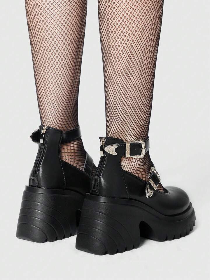 Goth Women's Wedge & Platform Slip-On Casual Shoes, Minimalist And Fashion, For Everyday Wear