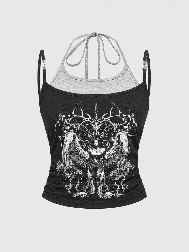 Goth Y2K Sexy Metal Pendant Dark Angel Skeleton Thorn Women Spaghetti Strap Camisole