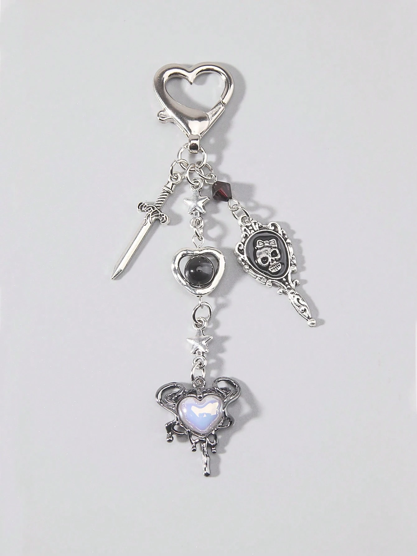 Goth Y2K Style Star, Skull, Sword, Heart Faux Gemstone Pendant Keychain, Phone Case Charm, Bag Decor, Unisex Holiday Gift