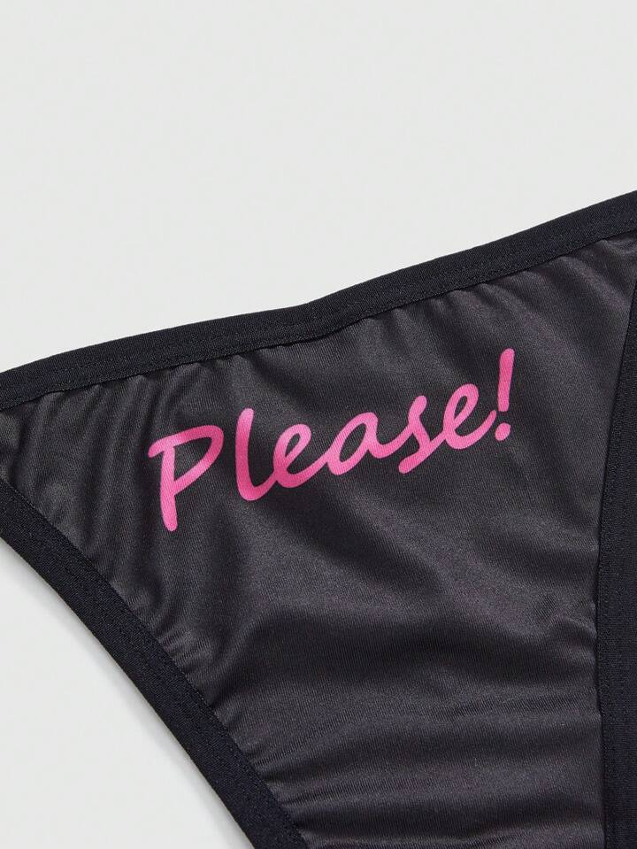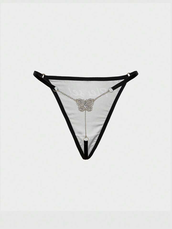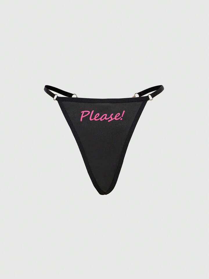 Gothic 3D Butterfly Chain Letter Print Slogan Thong Panties