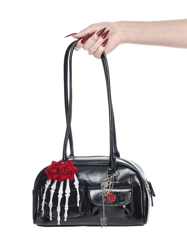 Gothic Chic Armpit Pouch, Vintage Punk Women Shoulder Bag, Black Bag