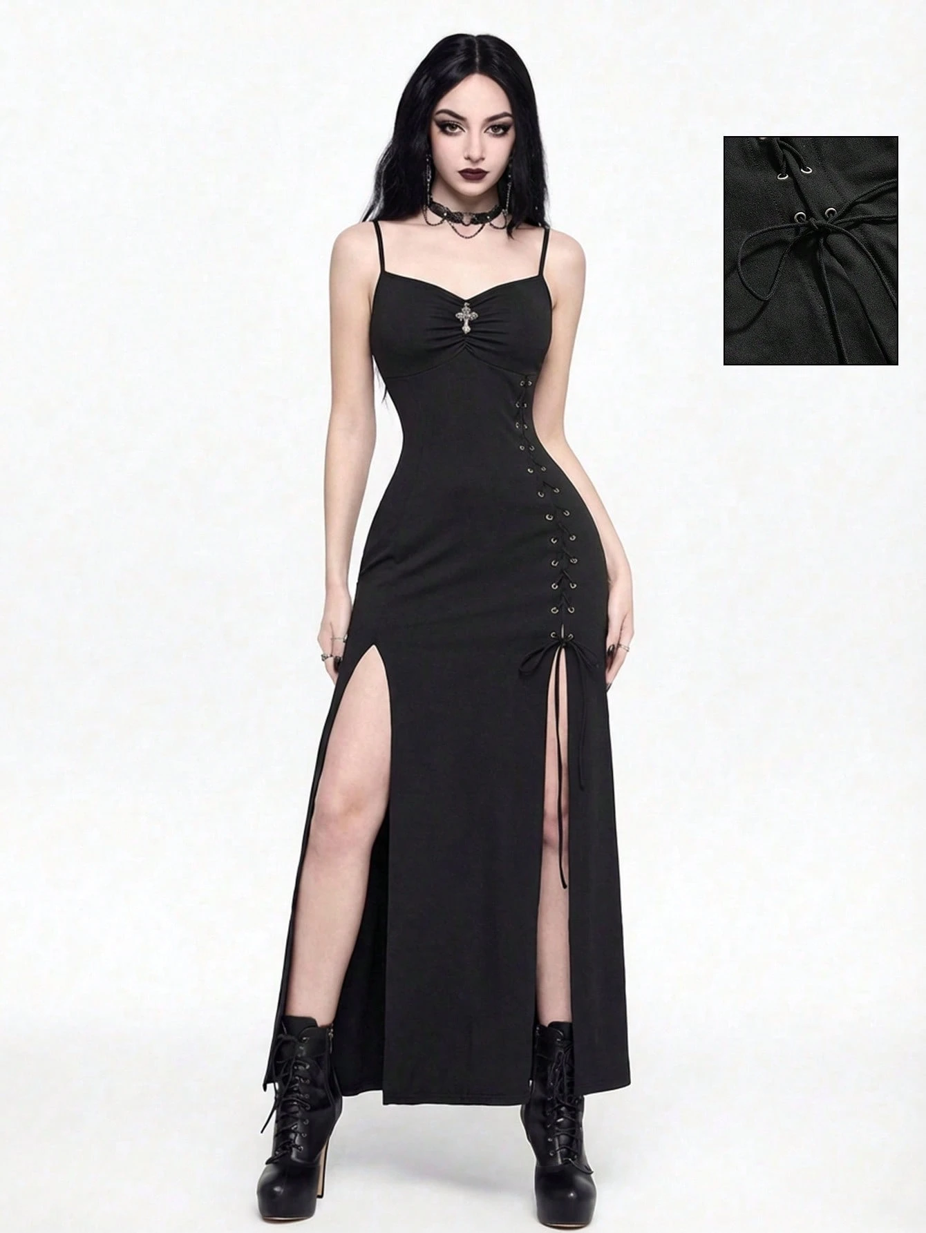 Gothic Cross Decor High Slit Sexy Bodycon Slip Dress ,Spring/Summer