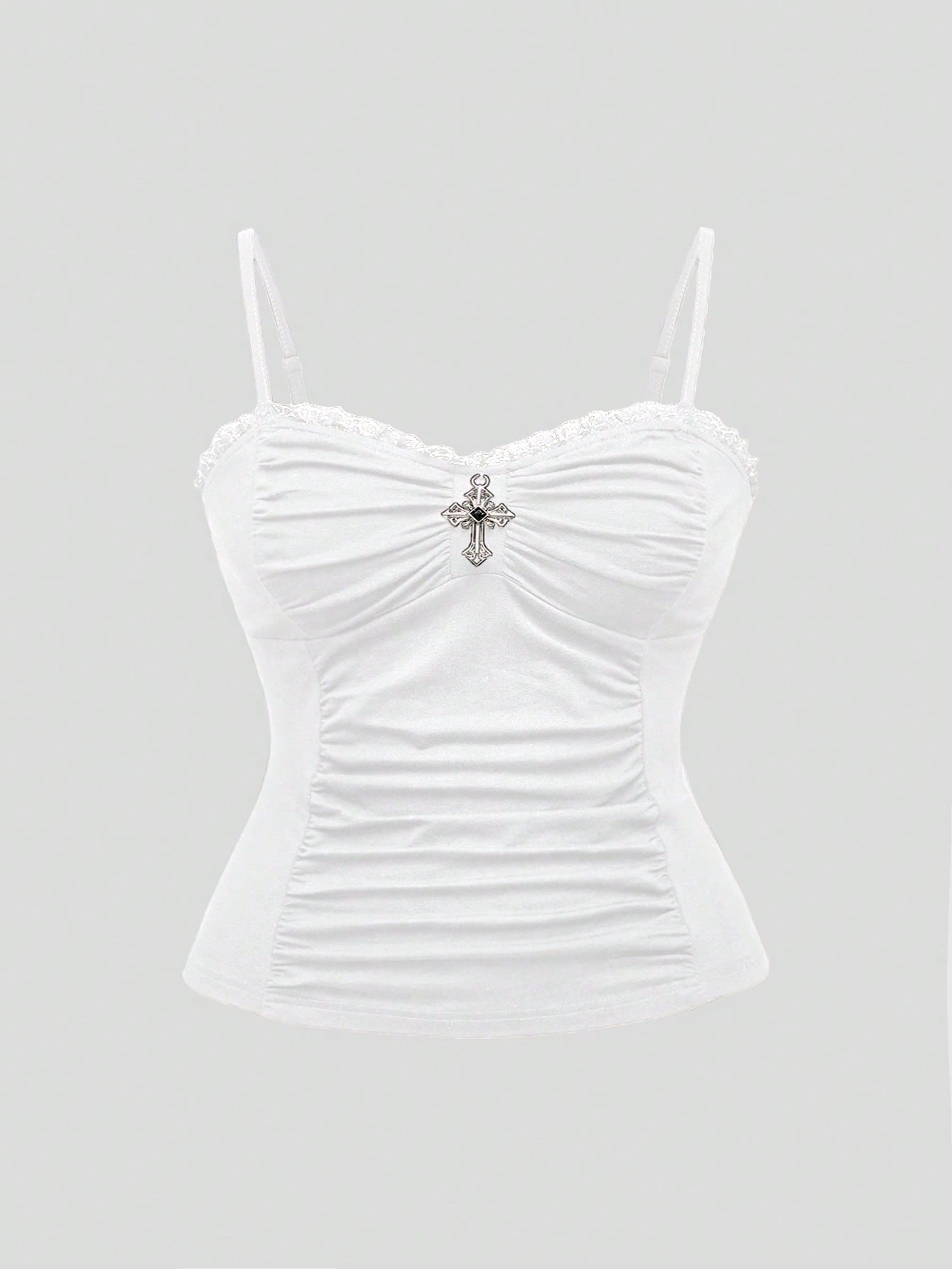 Gothic Cross Pendant Lace Patchwork Ruched Bodycon Plus Size Camisole