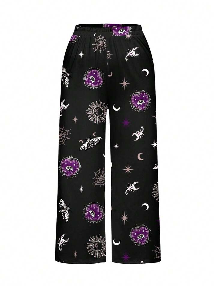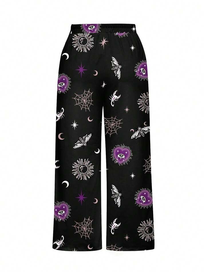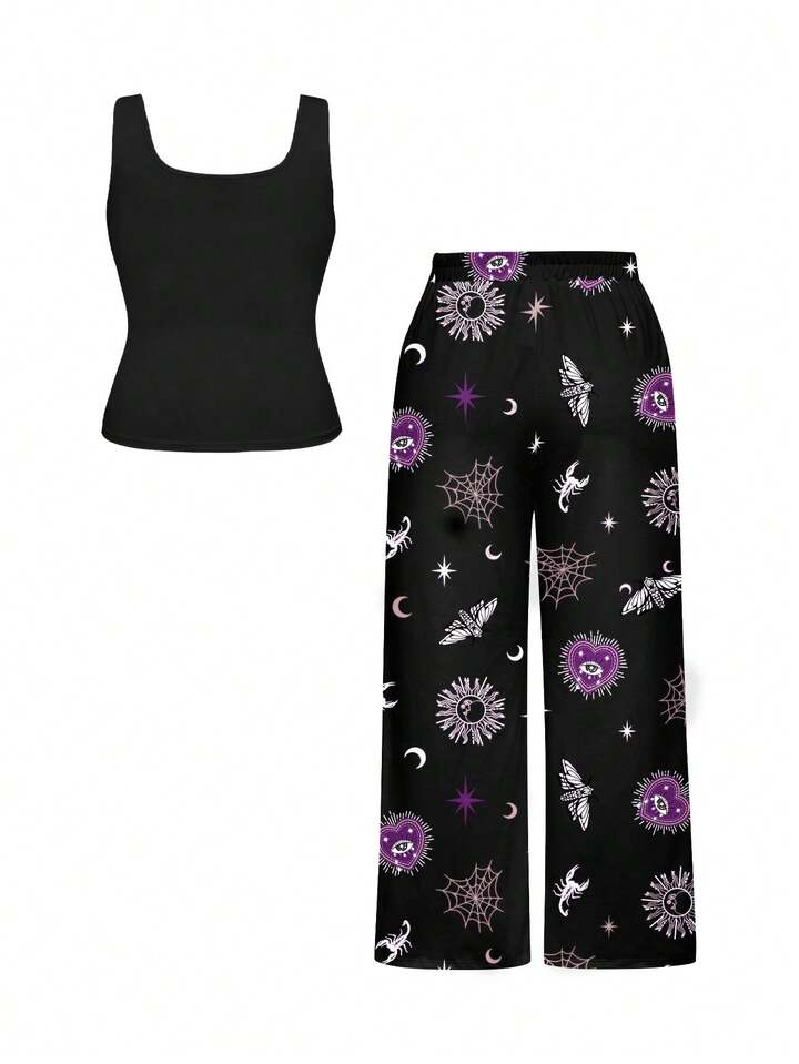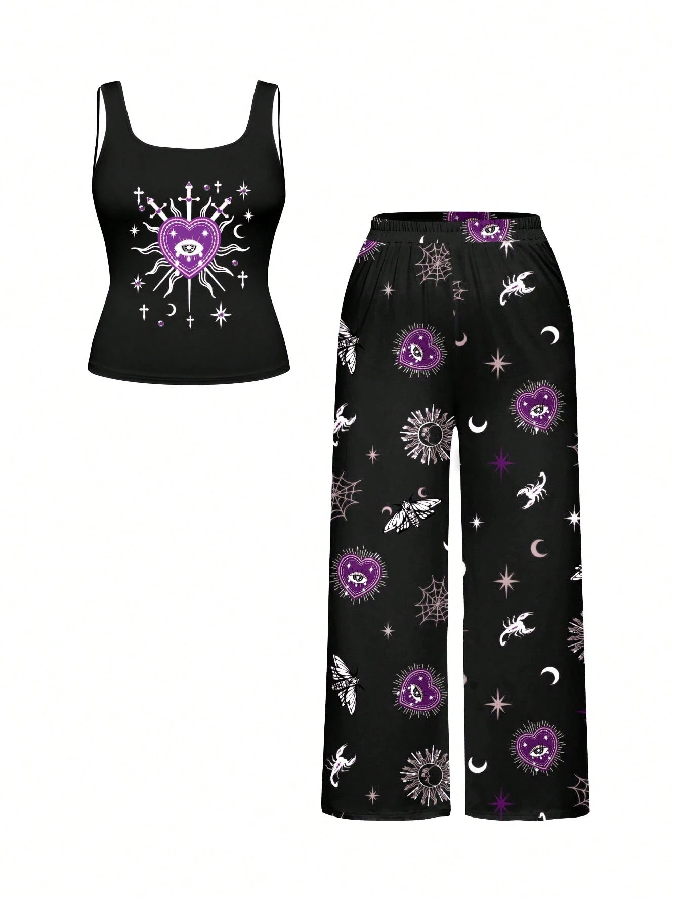 Gothic Dark Heart Eye Snake Sun Moon Spider All-Over Print Plus Size Sleeveless Top And Pants Loungewear Set