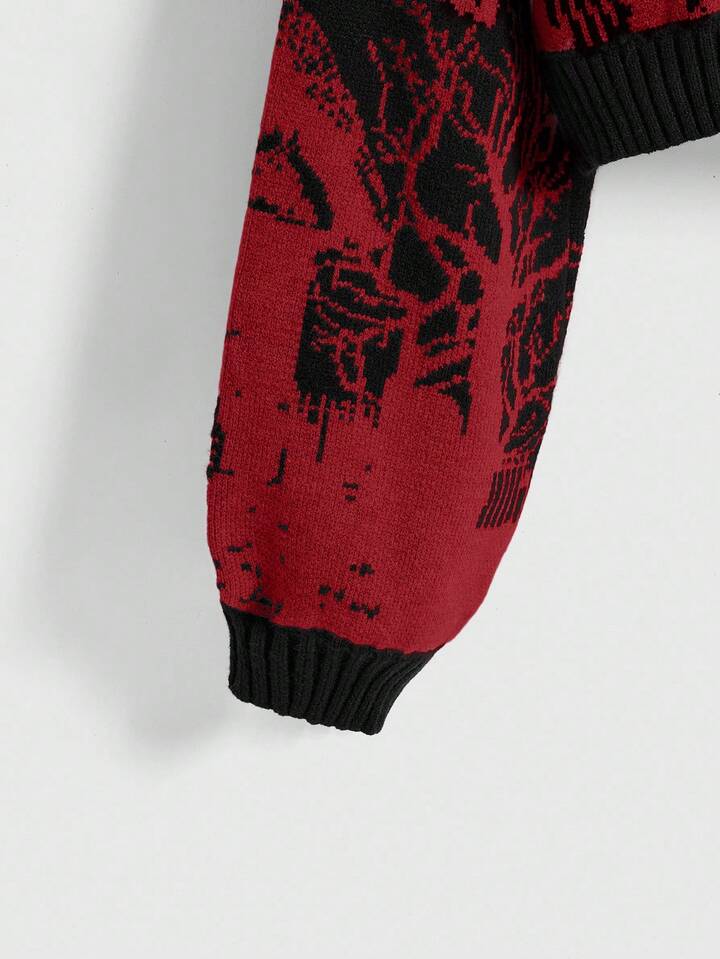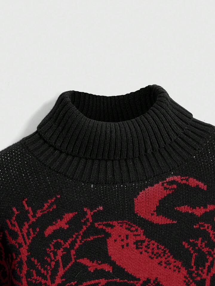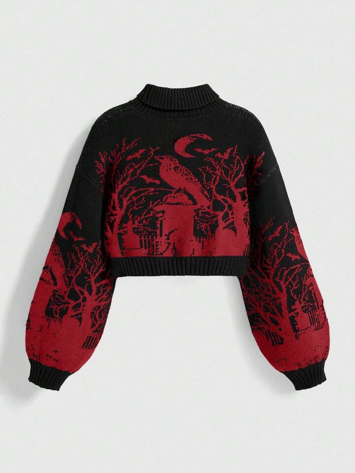 Gothic Dark High Neck Warm Raven Graveyard Moon Bat Branch Jacquard Black Lantern Sleeve Women Sweater