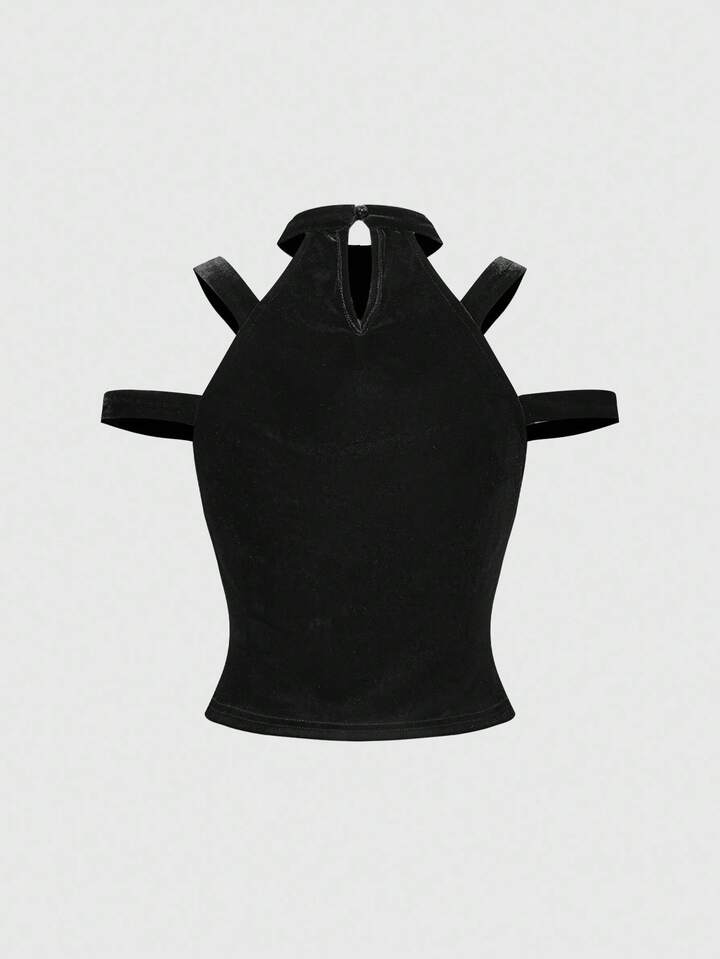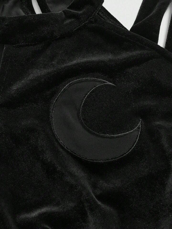 Gothic Dark Moon Hollow Velvet Tank Top For Women, Halloween