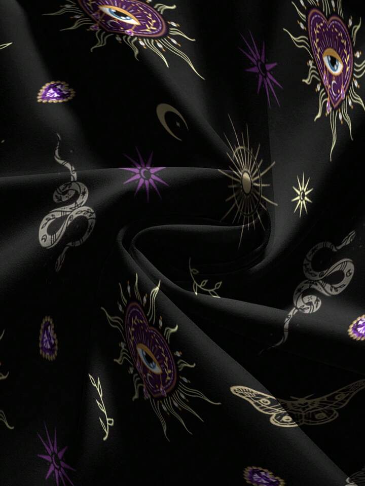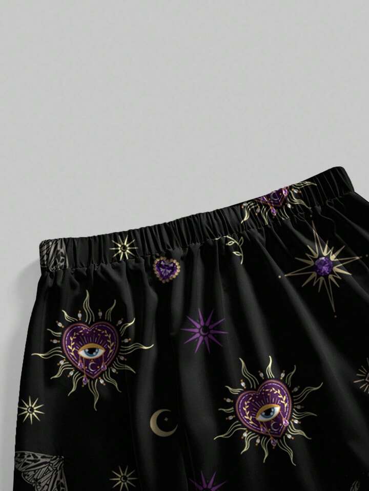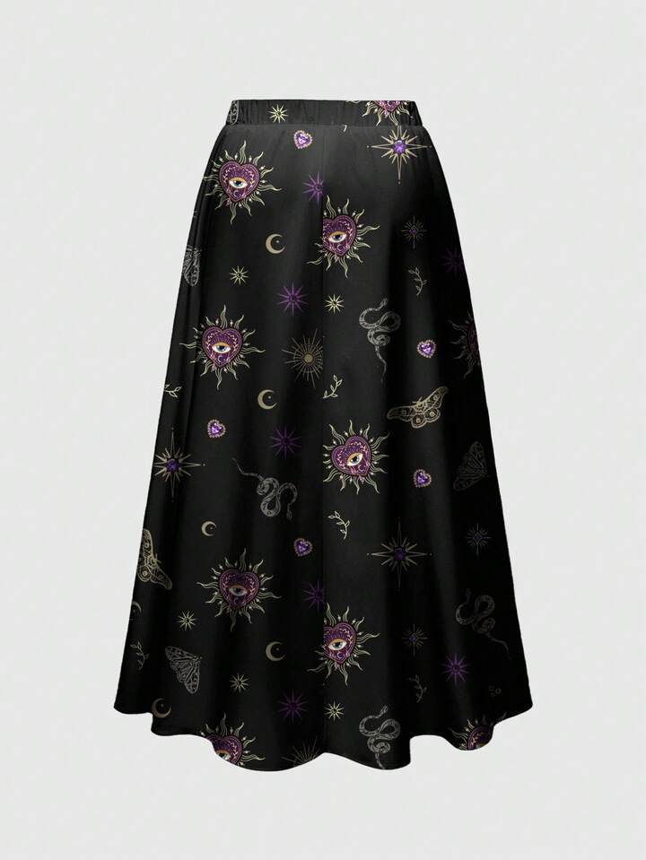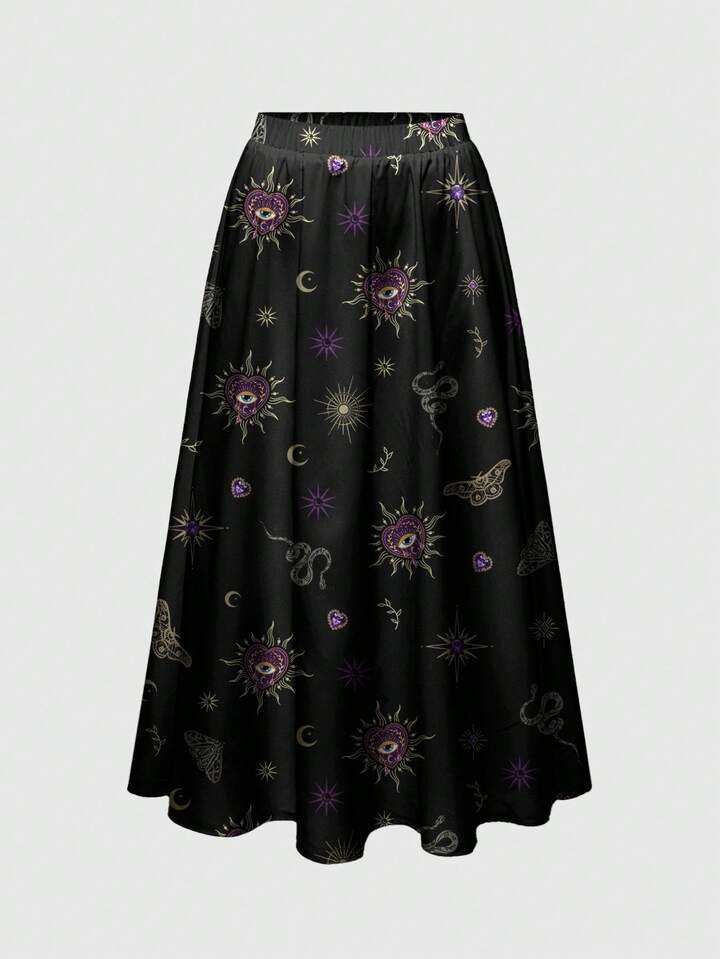 Gothic Dark Purple Heart, Snake, Cross Gemstone Heart Print Loose Fit Plus Size Skirt