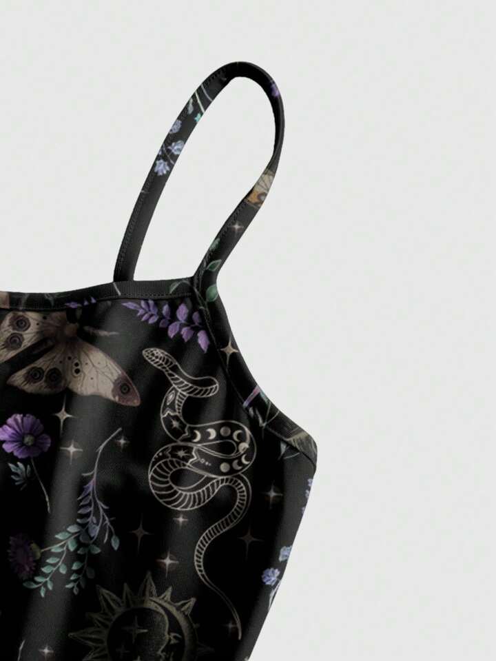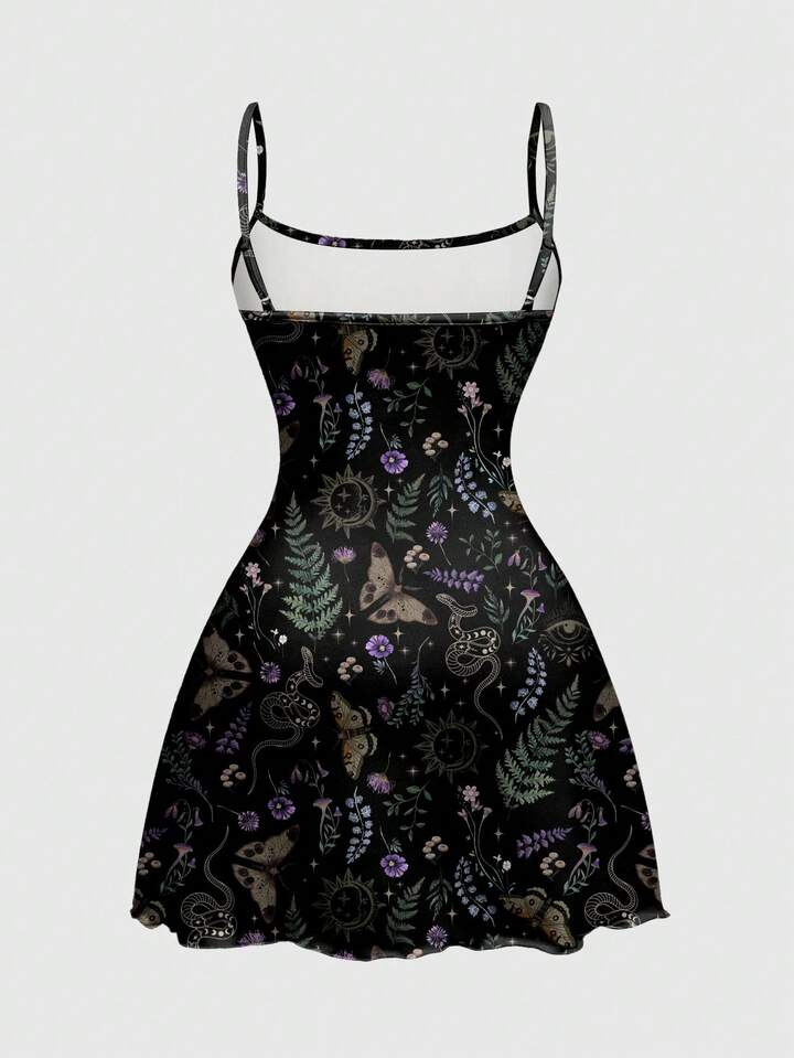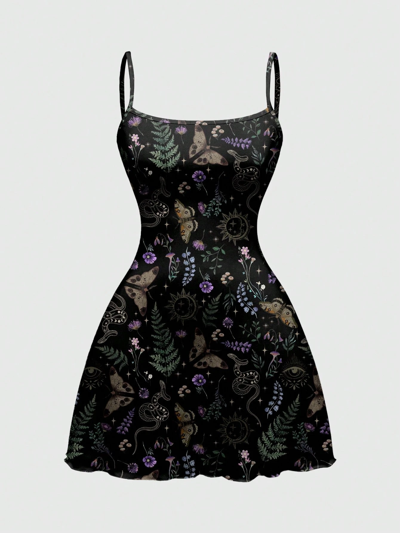 Gothic Dark Sun, Moon, Star, Leaf, Moth & Butterfly All-Over Print Mini Dress For Women