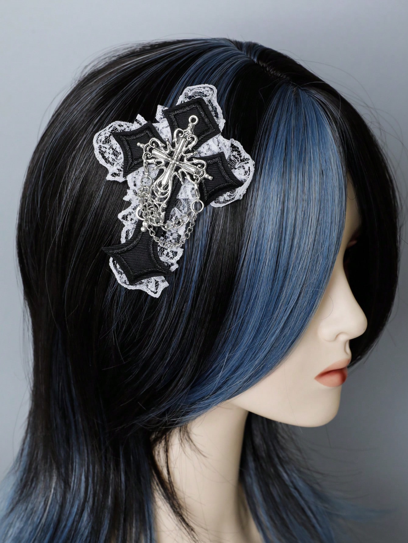 Gothic Elegant Cross Lace Embroidered Hair Clip