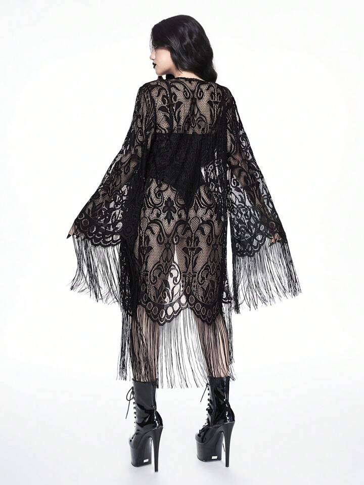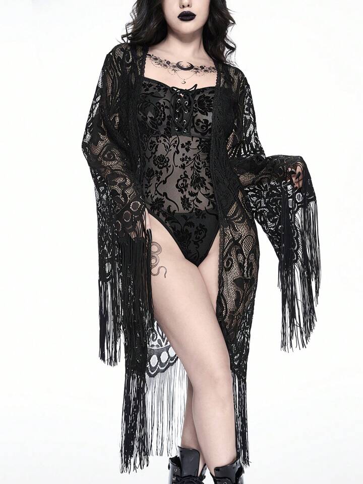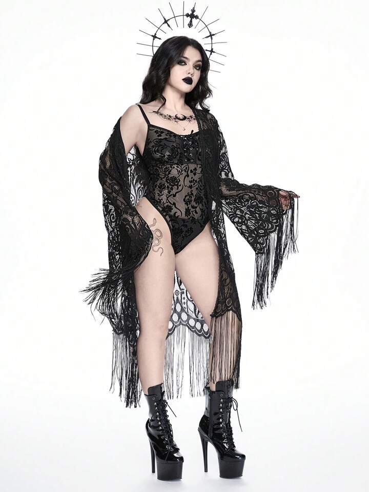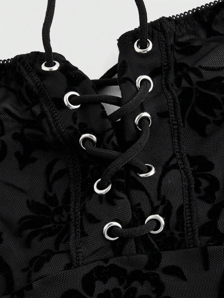 Gothic Floral Flocked Jumpsuit Wrap Top & Sexy Lingerie Set