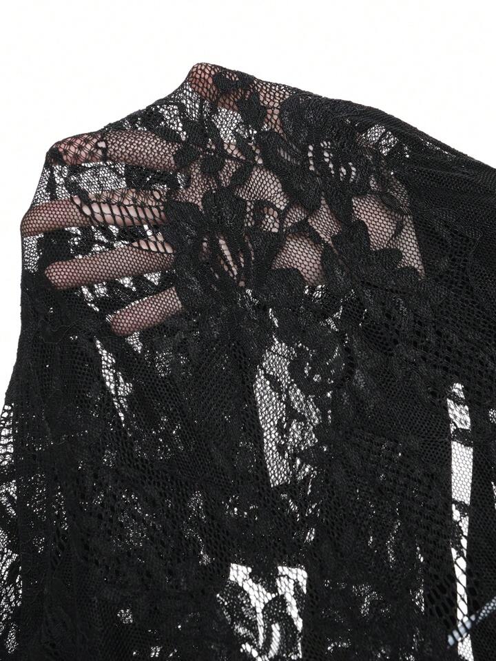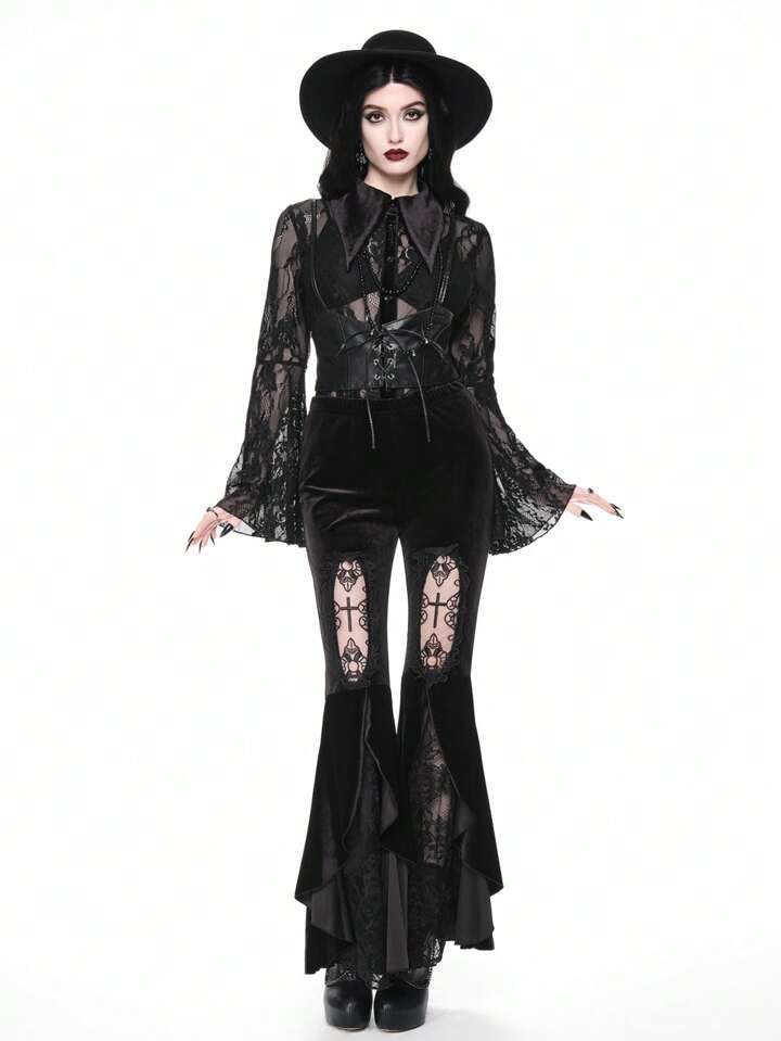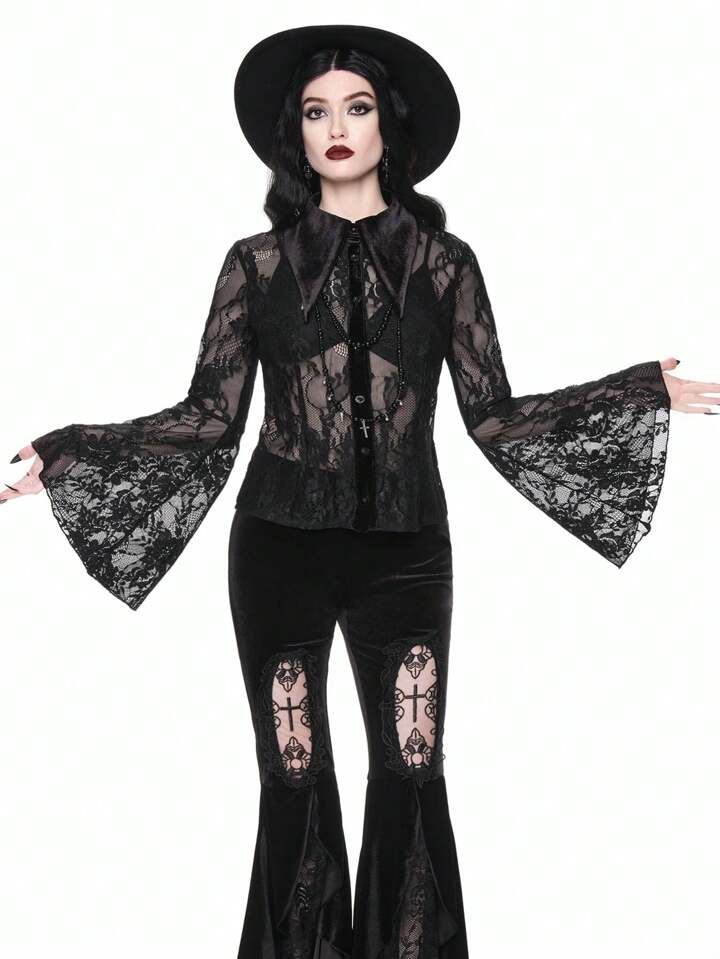 Gothic Graduation Ball Courtly Sheer Lace Flared Sleeve Fitted Women Blouse