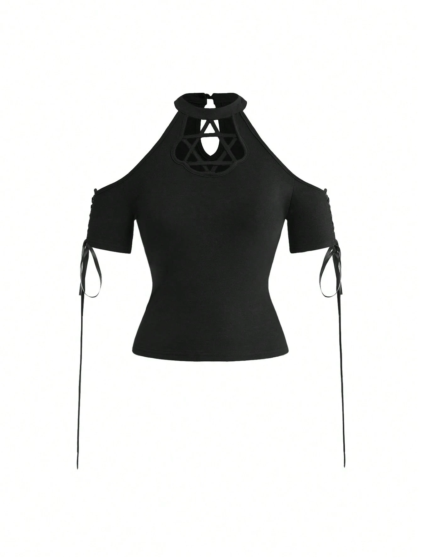 Gothic Hollow Lace-Up Six-Pointed Star Tight Fit Women T-Shirt, Dark Summer