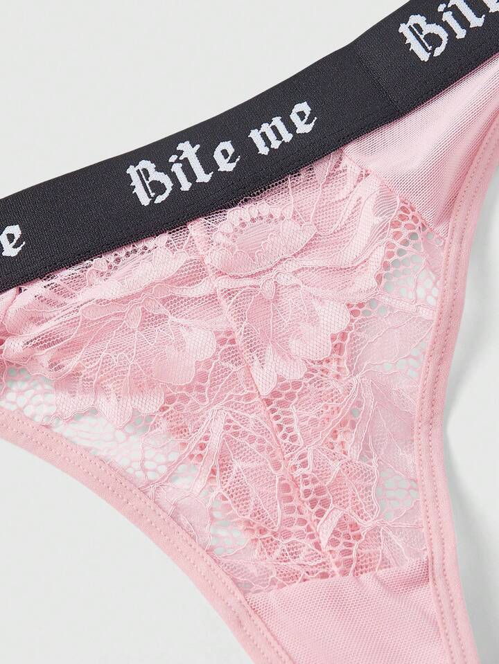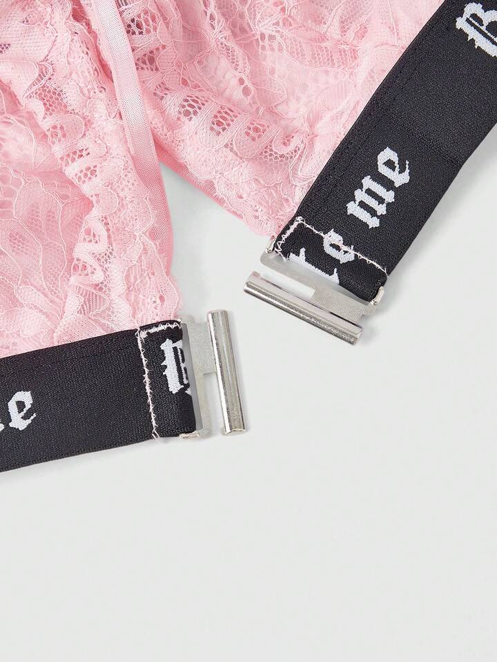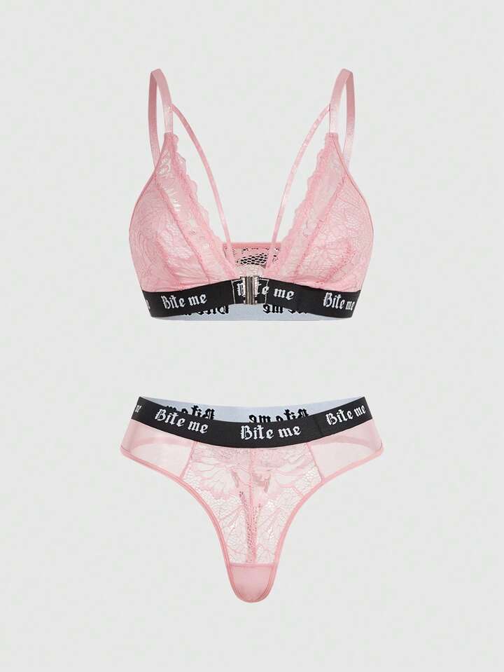 Gothic Lace Front Closure Wireless Bra Set For Women