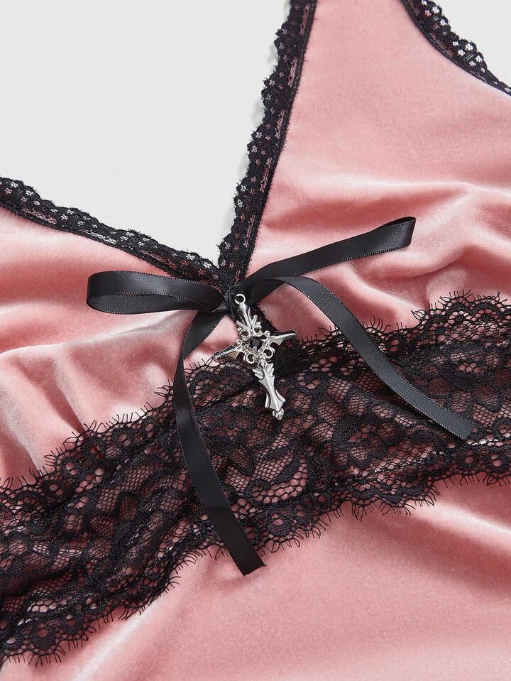 Gothic Lace & Velvet Fitted Halter Neck Tank Top For Women, Versatile Basics