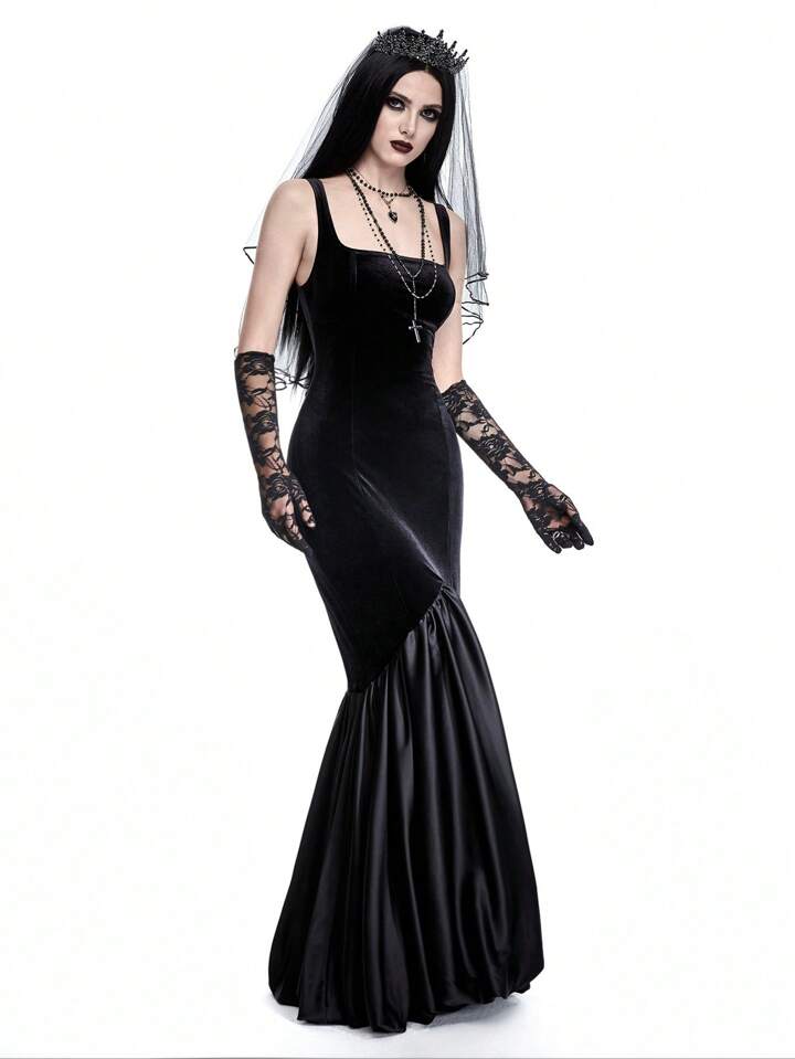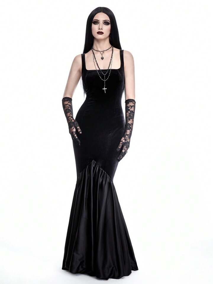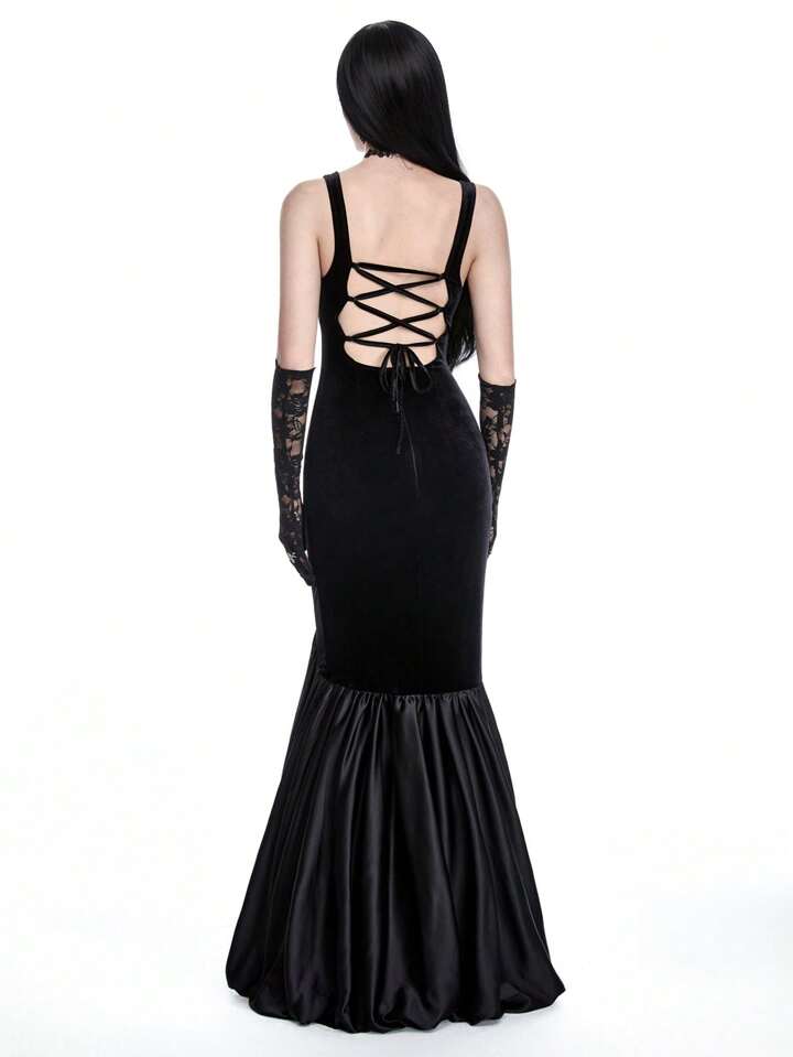 Gothic Palace Party Backless Sexy Maxi Trumpet Mermaid Dress Ball Gown For Women