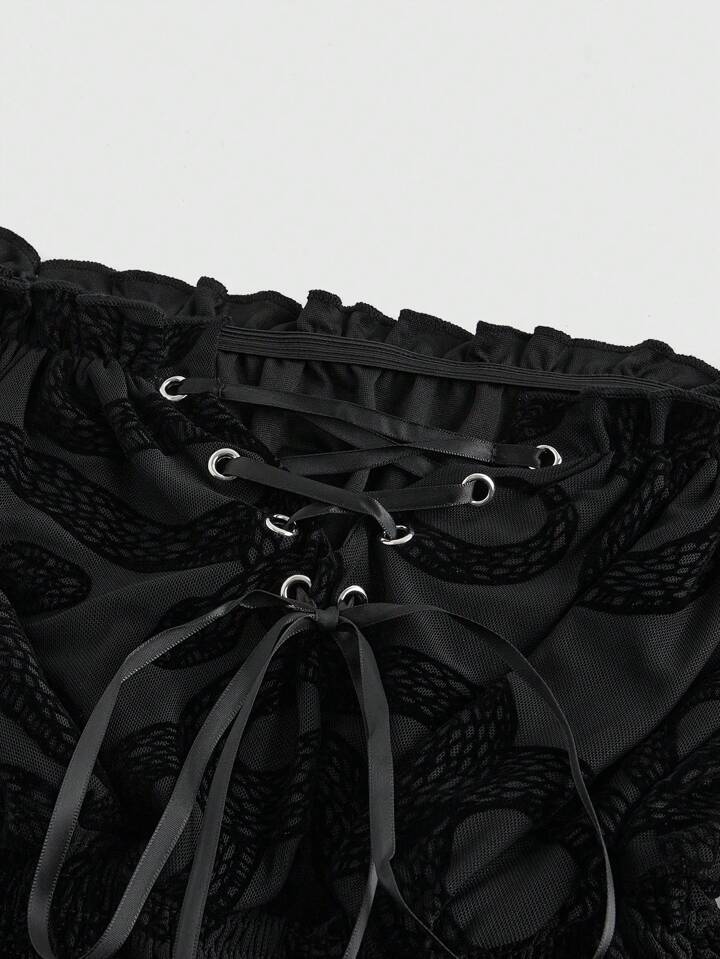 Gothic Palace Style Snake Print Flocked Off-Shoulder Top