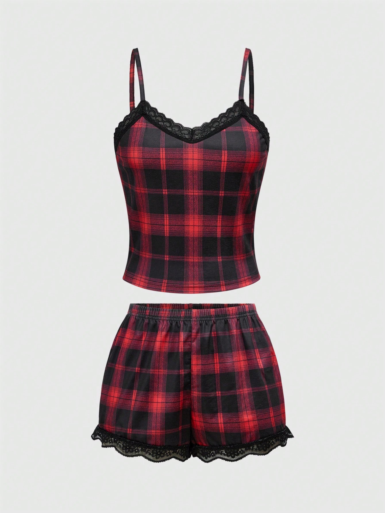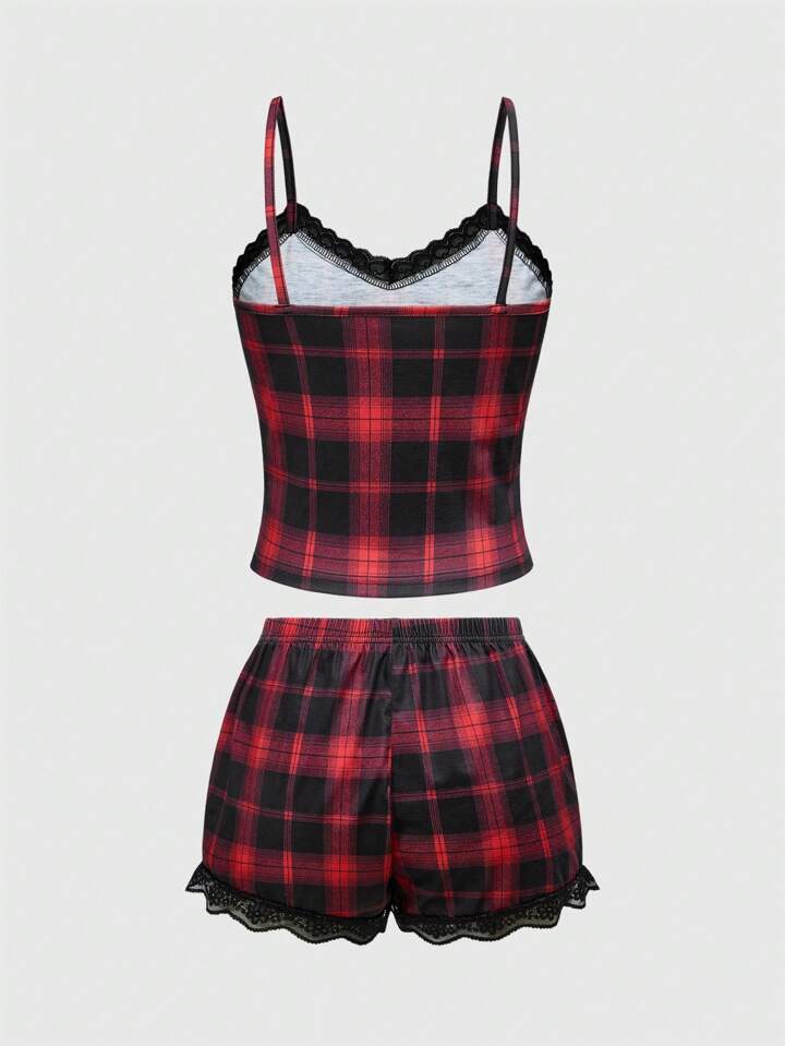 Gothic Plaid Lace Cami And Shorts Sleepwear Set