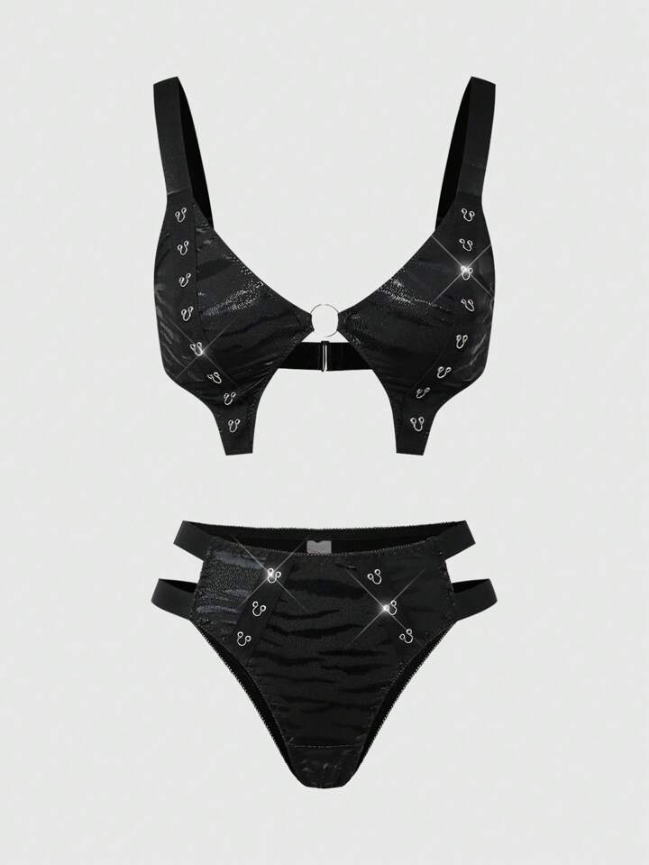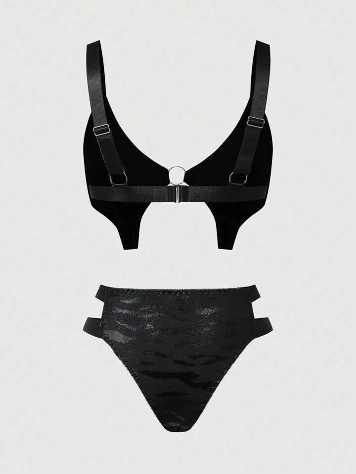 Gothic Print Fabric Bustier & Mini Skirt Lingerie Set