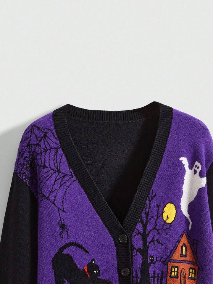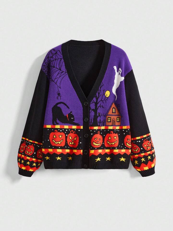 Gothic Pumpkin Print Cardigan For Women, Autumn/Winter
