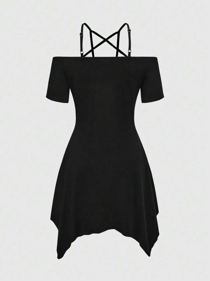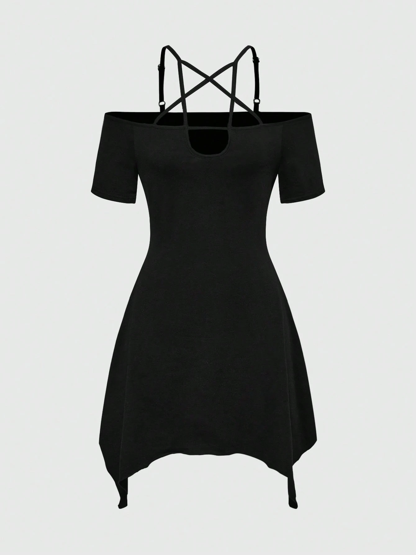 Gothic Sexy Off Shoulder Star Pattern Lace-Up Mini Dress For Women