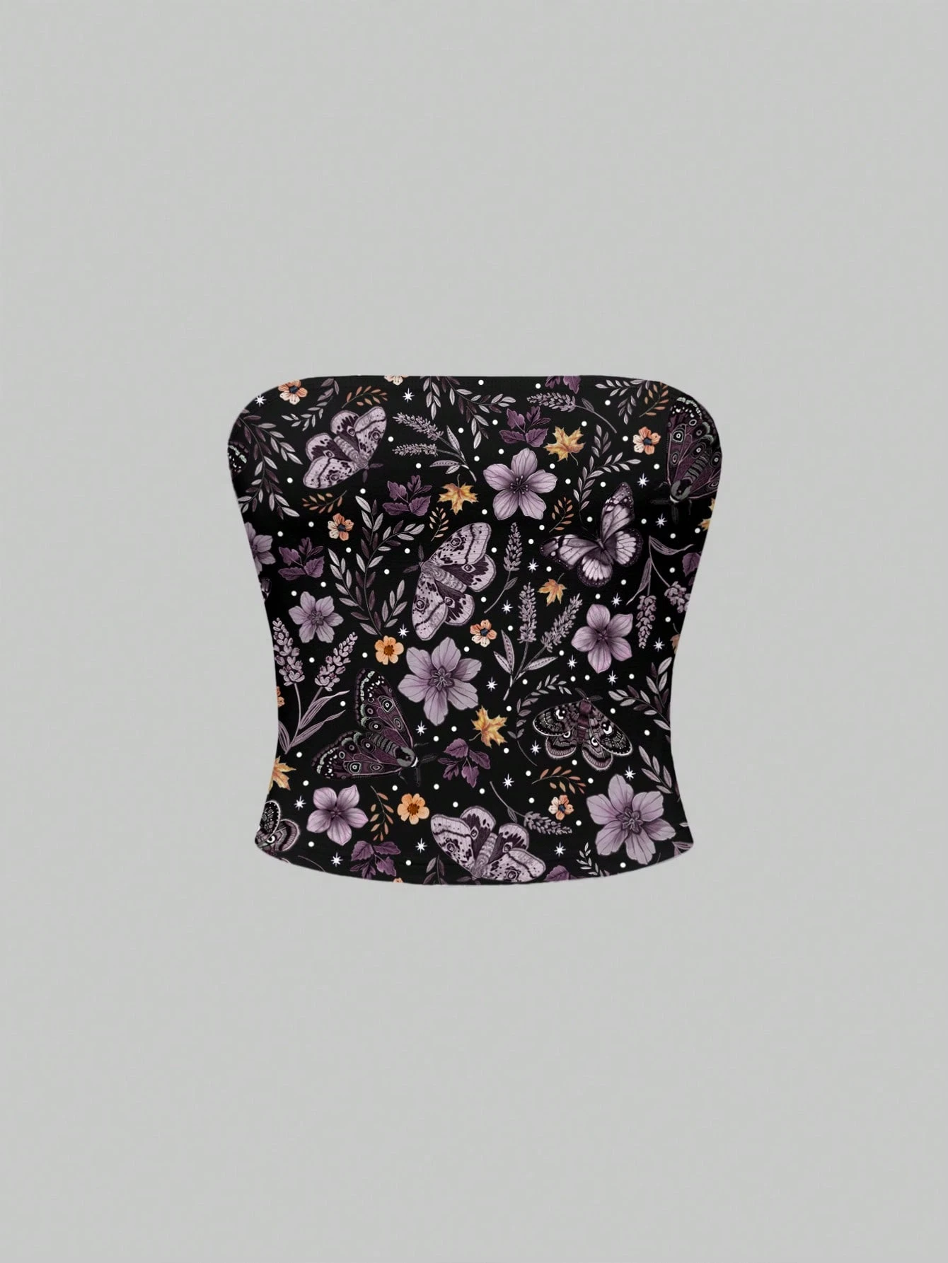 Gothic Style Floral & Butterfly Printed Halter Top For Women