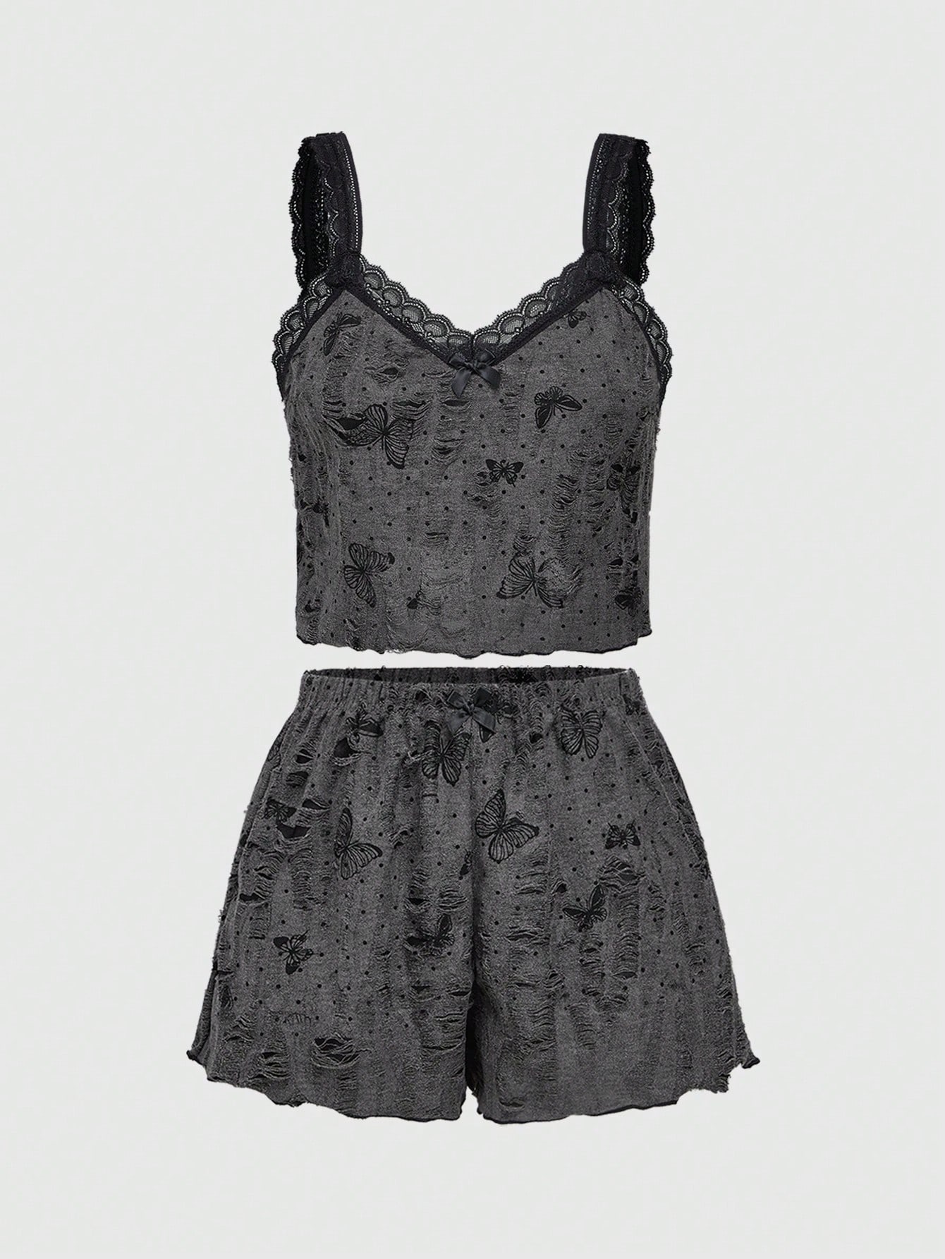 Gothic Style Jacquard Butterfly Camisole & Shorts Co-Ord Casual Pajamas Set