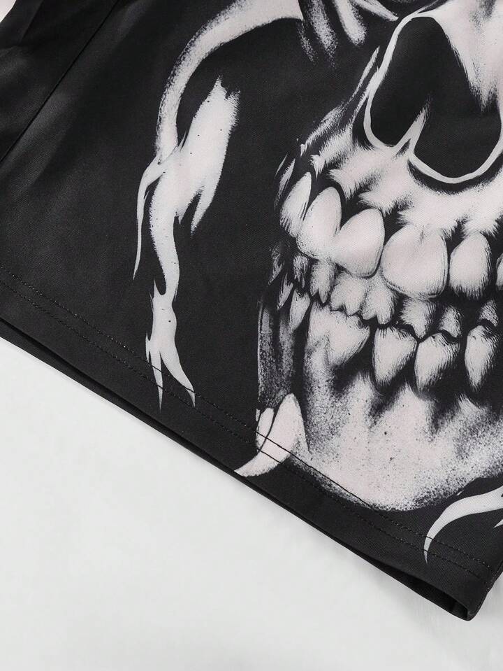 Gothic Style Skull Print Shorts: Unleash Your Rebellious Streetwear Vibe, Halloween