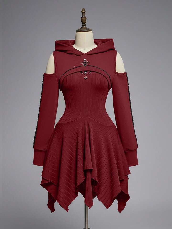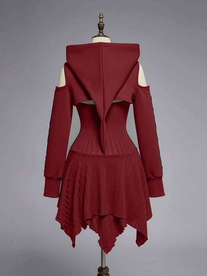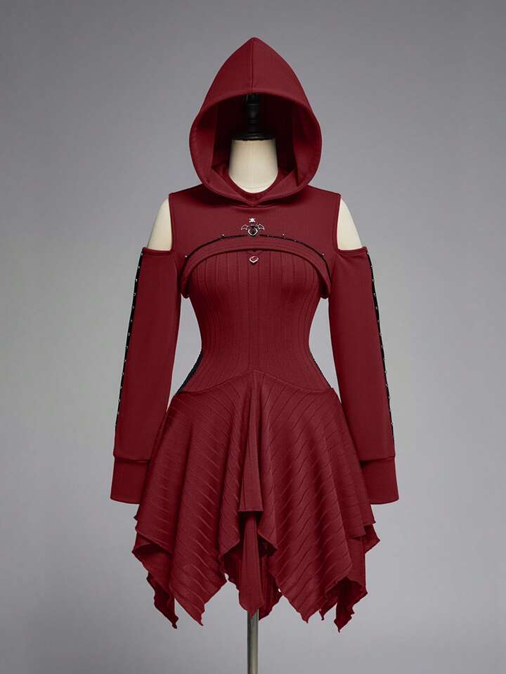 Gothic Witch Costume Set - Black Witch Hat, Hooded Sweatshirt, And Off-Shoulder Dress