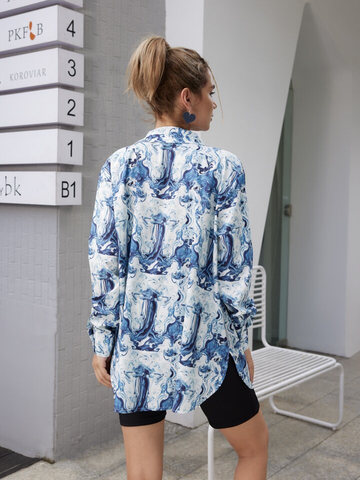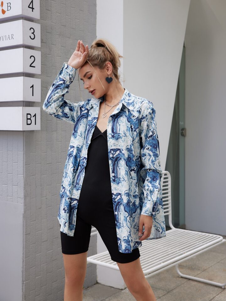 Graphic Print Button Front Shirt