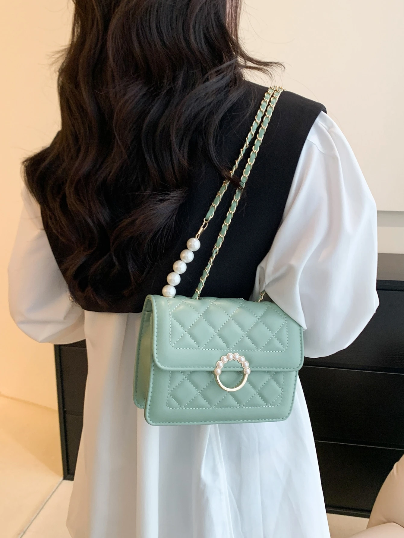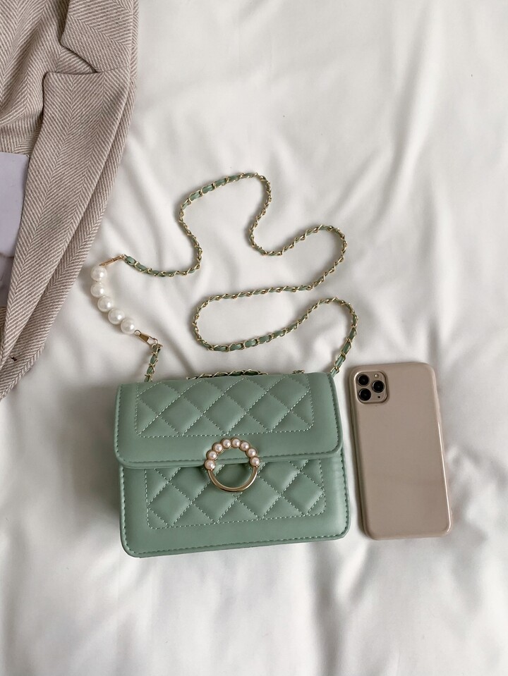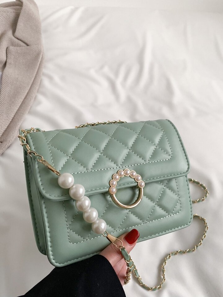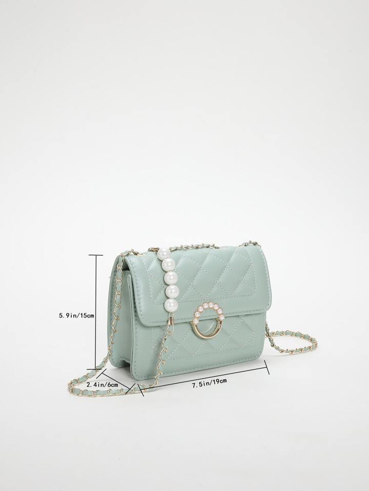 Green Square Bag Faux Pearl Decor Square Bag