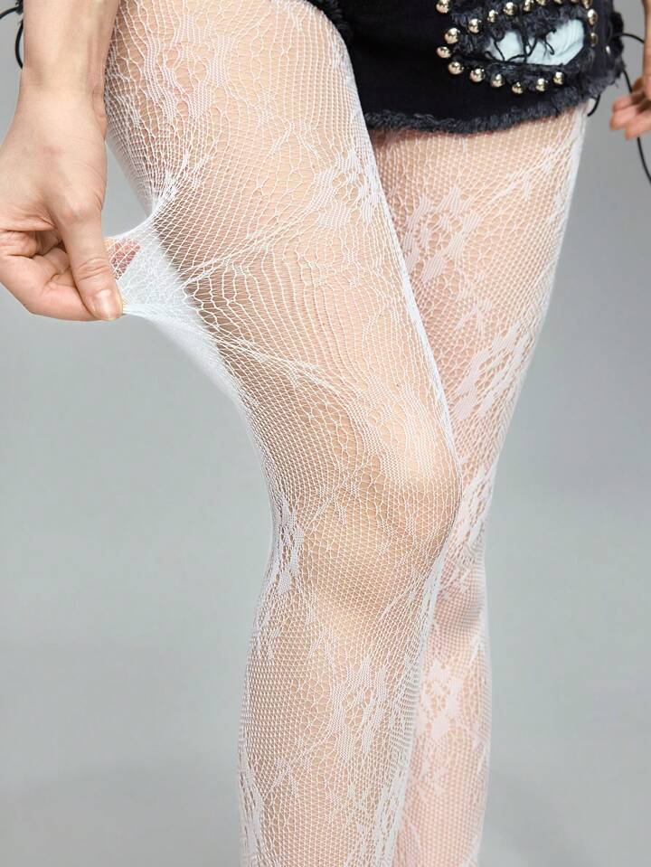 Grunge Punk 1 Pair Artist Series White Rose Hollow Fishnet Socks