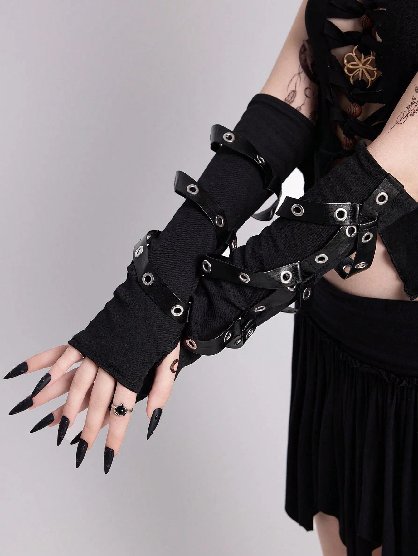 Grunge Punk 1 Pair Cyberpunk Punk Gothic Long Rivet Lace-Up Fingerless Gloves, Functional Arm Sleeve Cosplay, Halloween