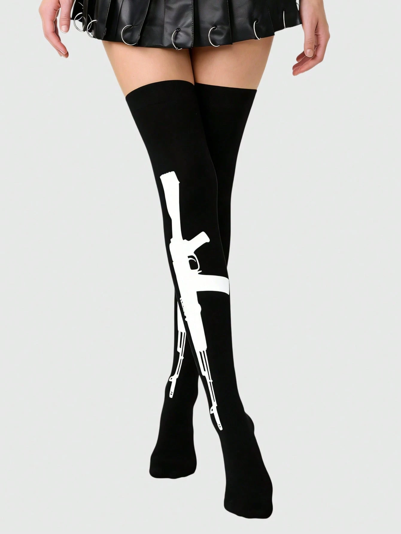 Grunge Punk 1 Pair Dark Punk White Machine Gun Black Over Knee Stockings