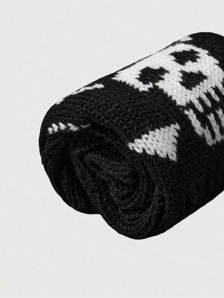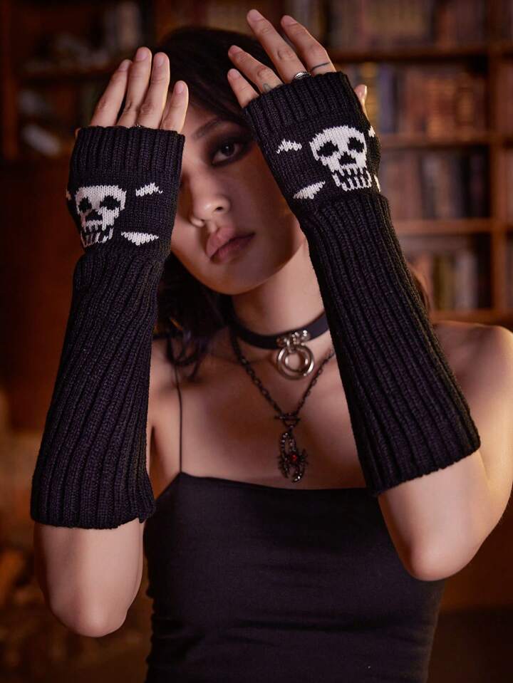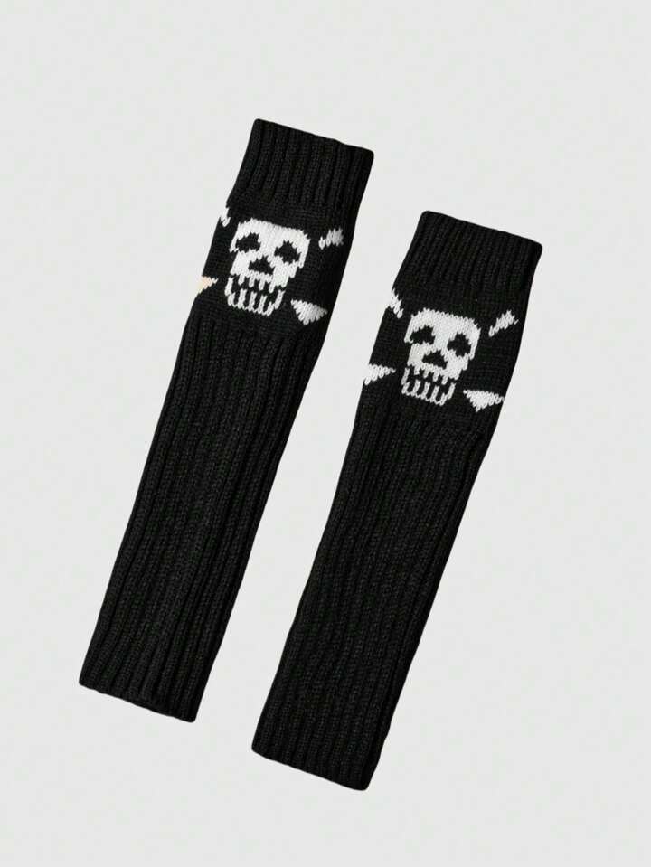 Grunge Punk 1 Pair Dark Skull Knitted Arm Warmers, Suitable For Everyday Wear