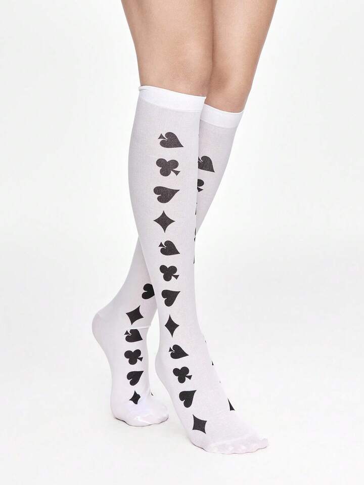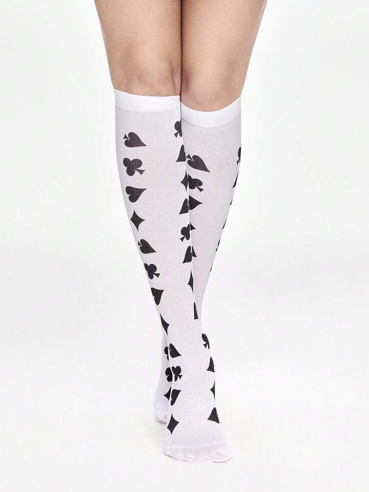 Grunge Punk 1 Pair Gothic Style Black & White Playing Card Element Over-The-Knee Socks