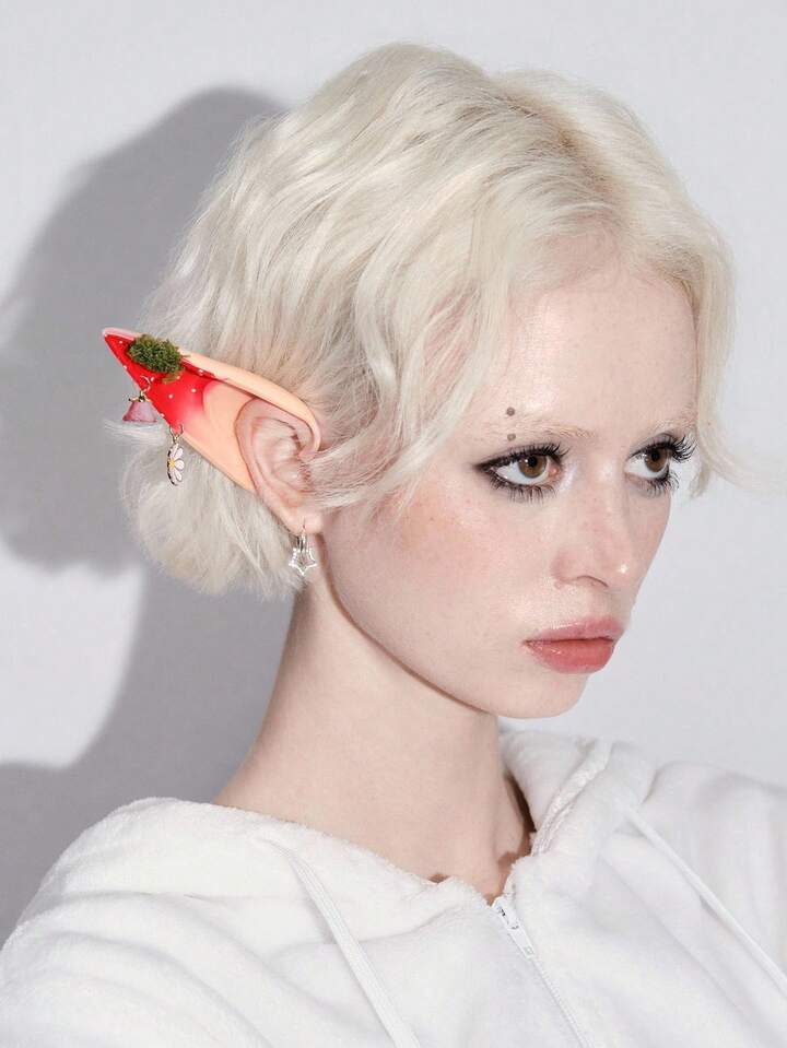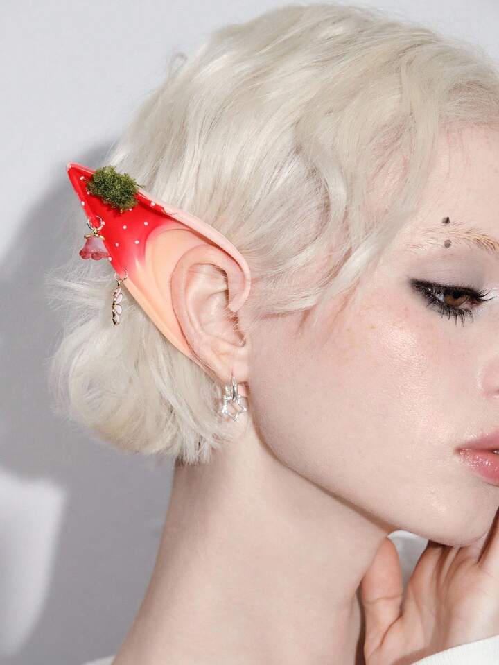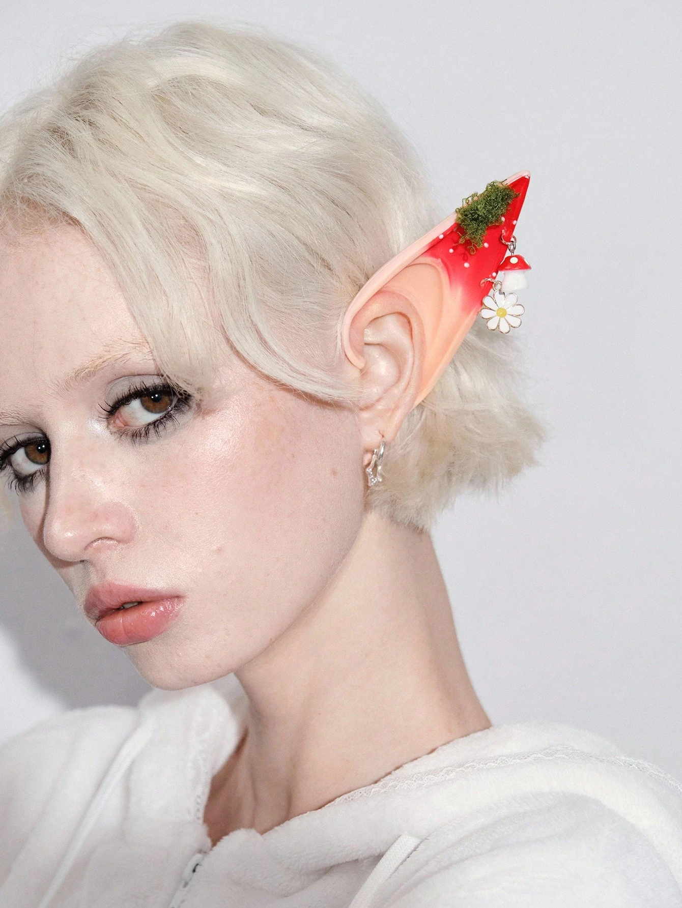 Grunge Punk 1 Pair Halloween Green Grass Hanging Mushroom Flower Party Fake Ears