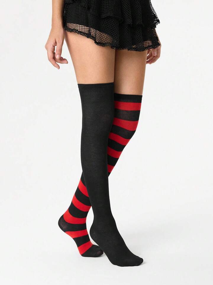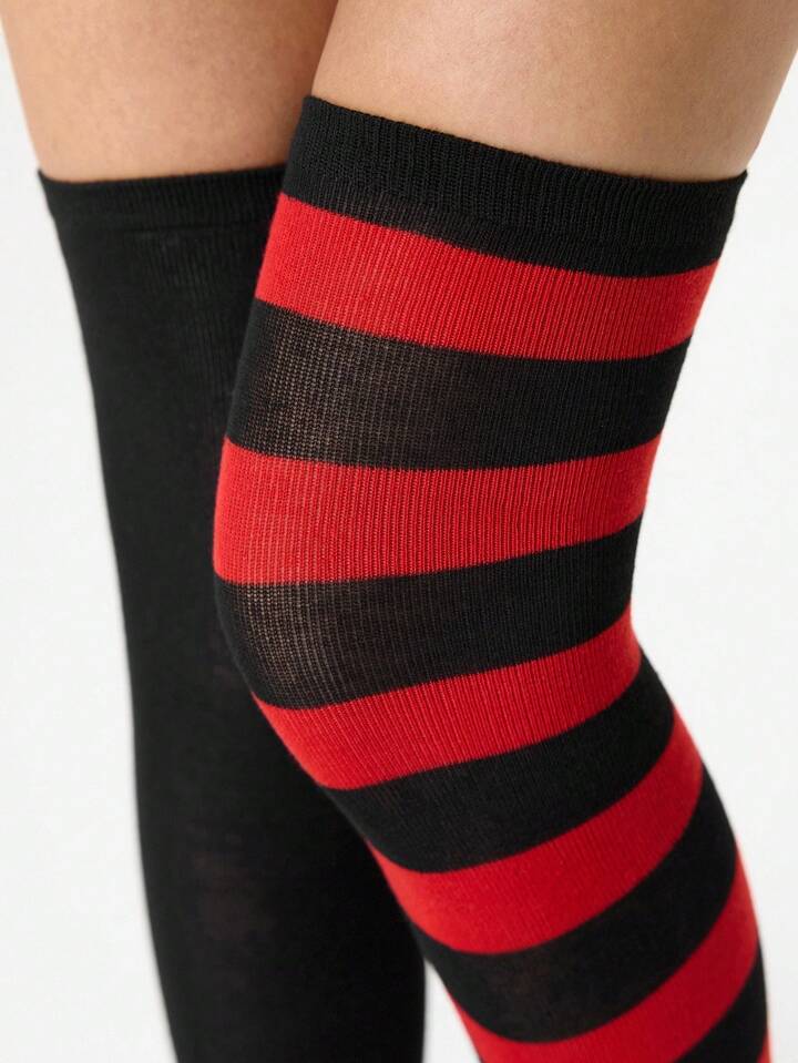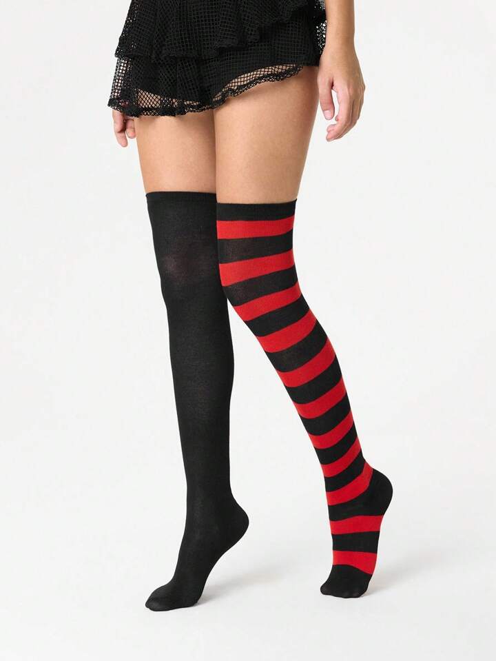Grunge Punk 1 Pair Women Asymmetric Colored High Elasticity Thigh High Socks