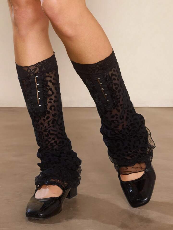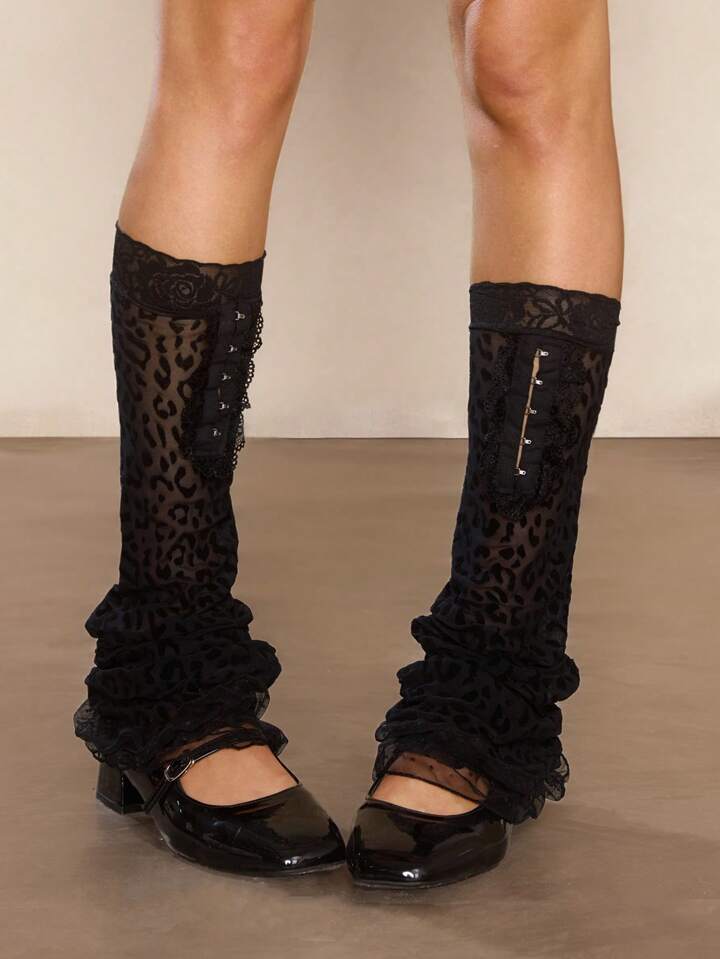Grunge Punk 1 Pair Y2K Style Black Leopard Print Lace Leg Warmers, Multi-Layer Black Polka Dot Ruffle Leg Warmers, Subcultural Lace Patchwork Tulle Leg Warmers
