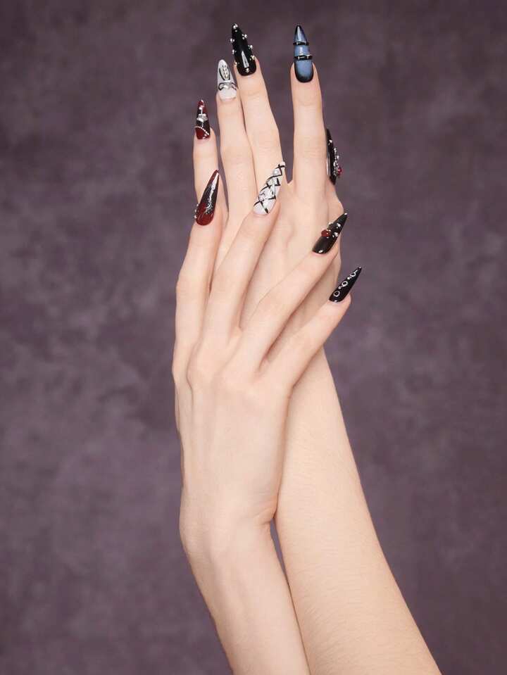 Grunge Punk 10pcs Star & Bow DIY Artificial Nail Tips + 3pcs Double-Sided Adhesive, Removable Rhinestone Nail Art Stickers, High Quality Blue & Black Ombre Colorful Nail Decals, Suitable For Holidays, Party, Dance And Daily Wear