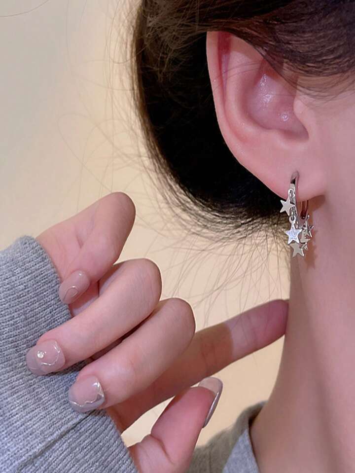 Grunge Punk 1pair Fashion Zinc Alloy Star Drop Earrings For Women For Dating Gift