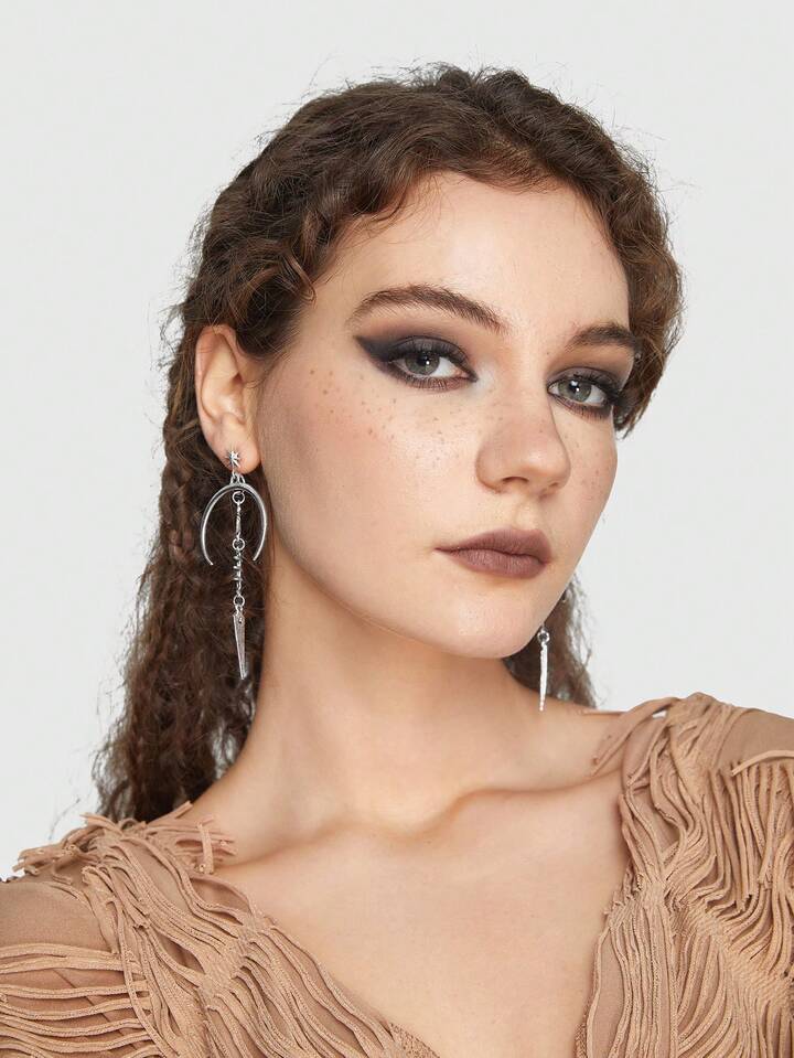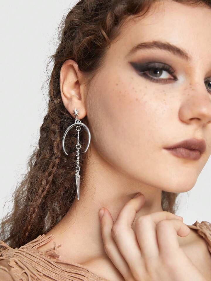 Grunge Punk 1pair Funky Copper Alloy Eye & Moon Drop Earrings For Women For Daily Decoration